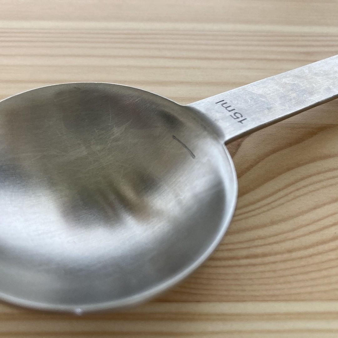 底が丸いスプーンだとわかりづらい、液体の2分の1もきっちり測れますよ。