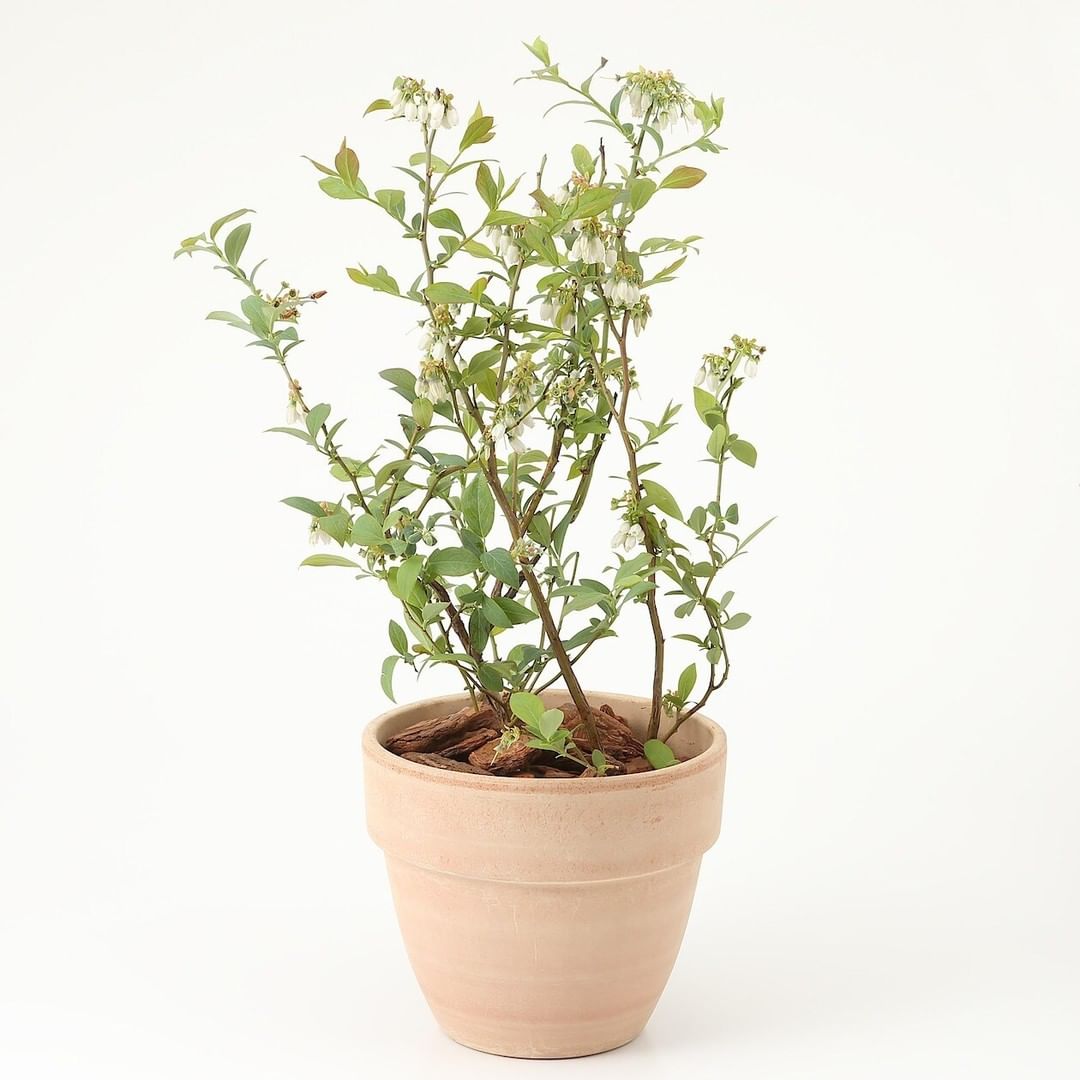 違う品種の花粉と受粉することで実がなりやすいため、2種のブルーベリーの木を、通気性や排水性の良いテラコッタの鉢に植えました。
