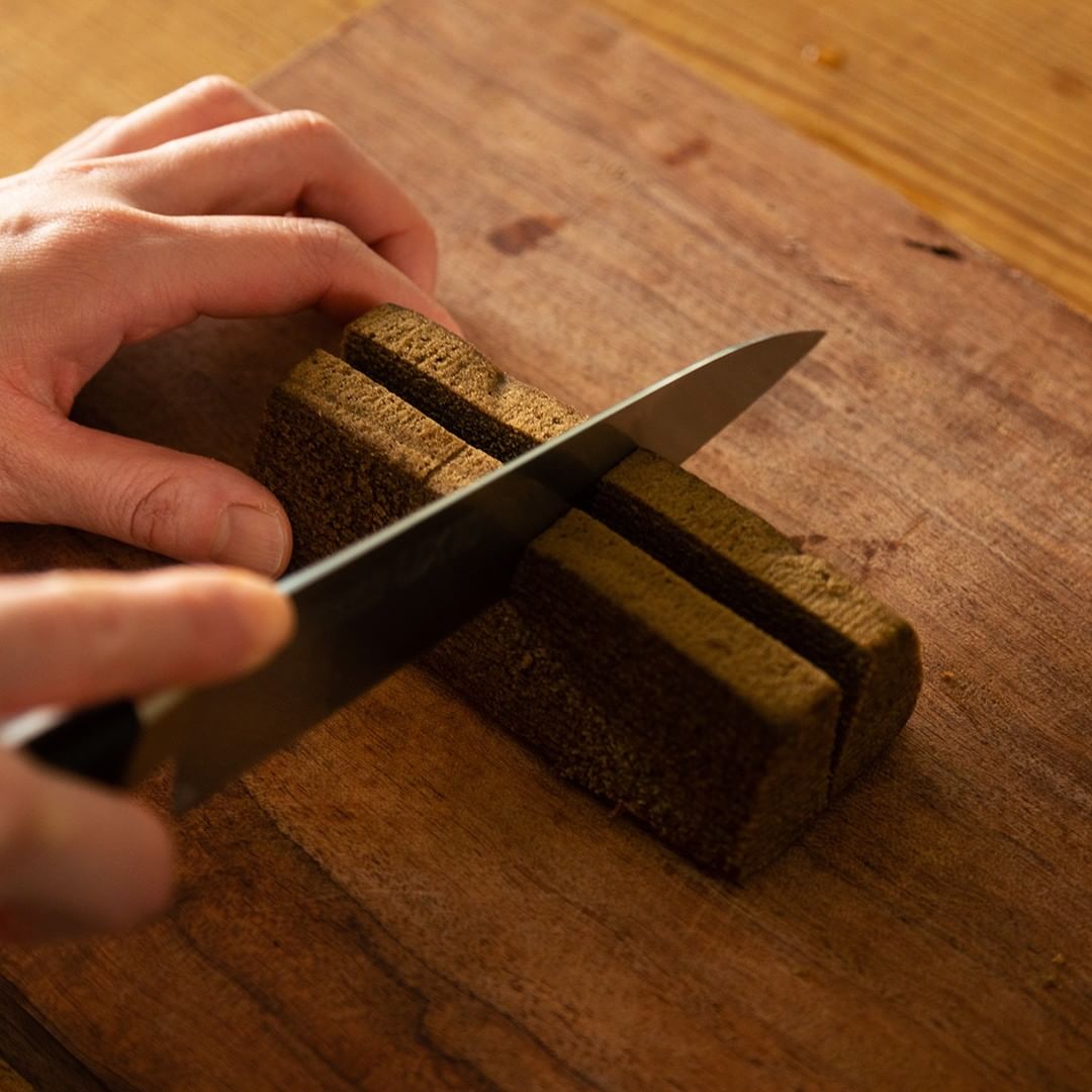 今回のレシピは、「不揃い ほうじ茶バウム」を使った「ほうじ茶バウムのあんバターサンド」。