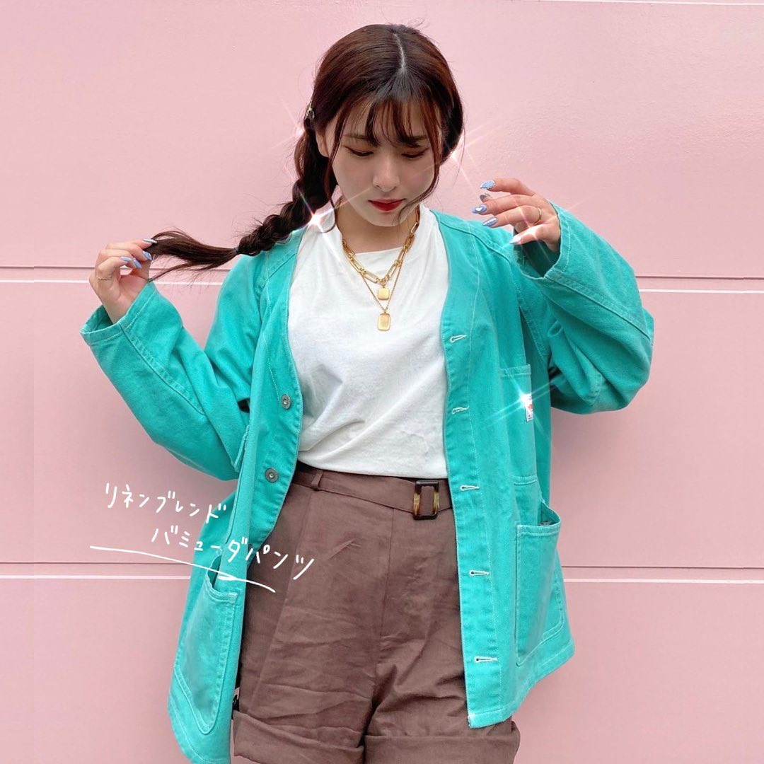 リネンブレンドのナチュラルな風合いが、爽やかな、抜け感のある着こなしに✨Tシャツ合わせが、めちゃ可愛い😘優しいブラウンは、色々なカラーにマッチするから、お洒落さんにはもってこい👌イチオシのバミューダパンツ🙌
