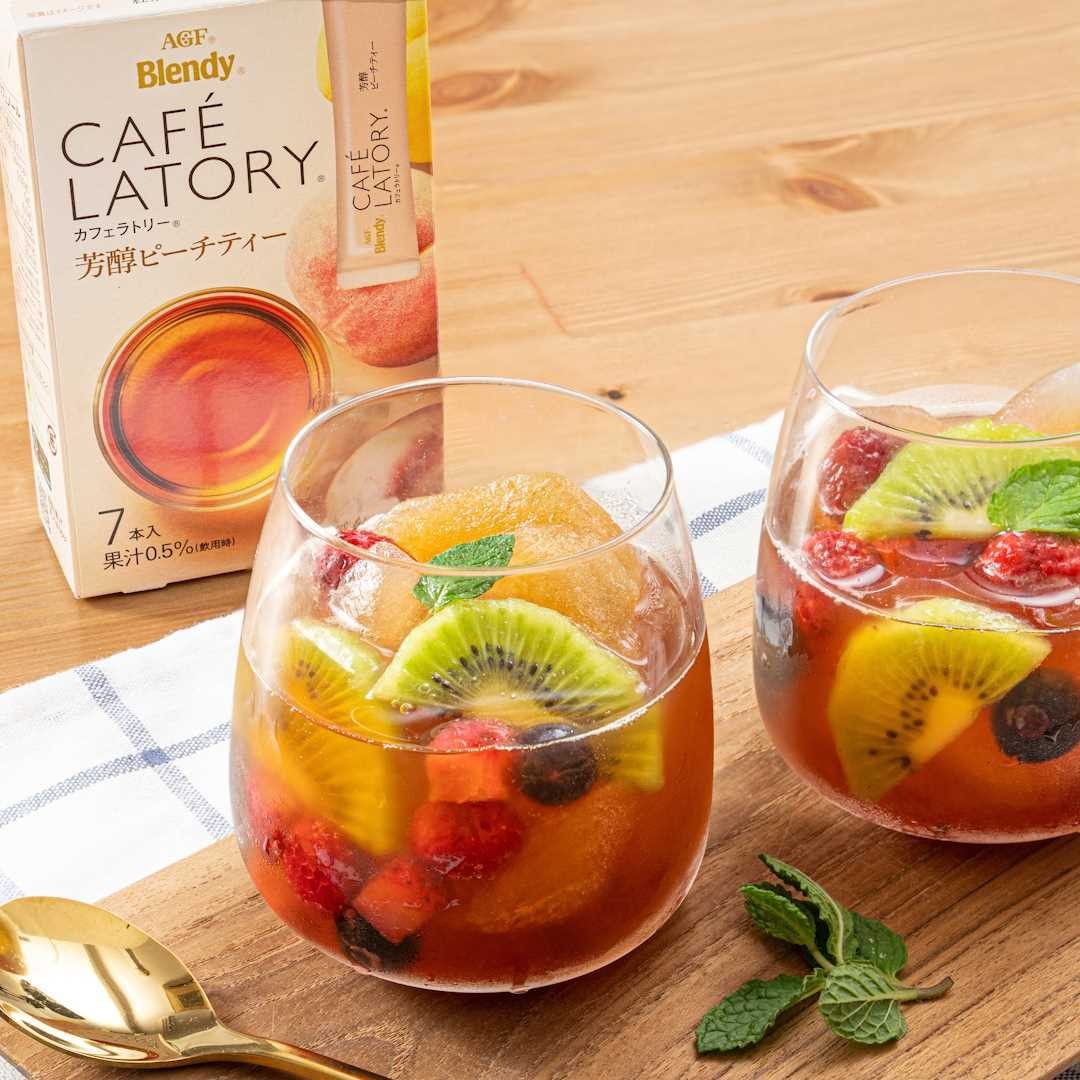 パキッと氷でカフェ気分!おうちで楽しむ氷割フルーツティーのご紹介です。「ブレンディ®︎カフェラトリー®︎」に季節の果実を加え、彩りデザートティーにアレンジしました。フルーツを入れたり、牛乳を入れてミルクティーにしたりとアレンジは無限大!ぜひお好みの飲み方を見つけてみてくださいね。
