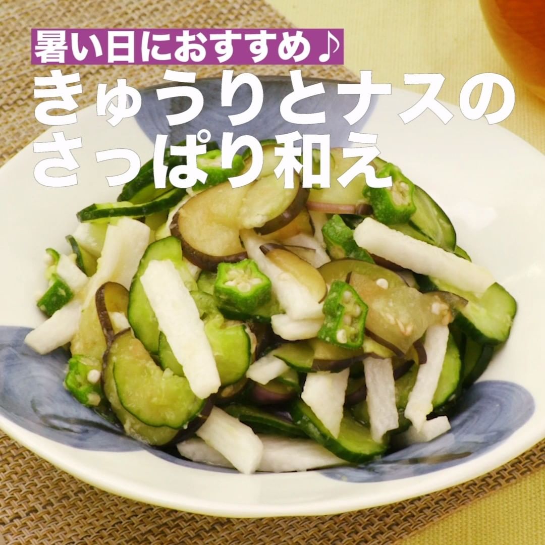 ⑤<暑い日におすすめ♪きゅうりとナスのさっぱり和え>