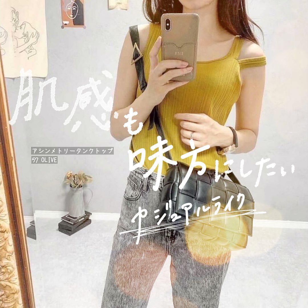 アシンメトリーのデザインが可愛くて🥰肌感を、上手に見せられるから👍 1枚で、お洒落見え抜群✨夏のトップスとしても良き😘レイヤードコーデのインナーとしても、活躍しそう❤️リブ素材だから、着こなしやすいのも魅力ですね💕カジュアルを、自分らしく楽しみたい時にぴったりです👏