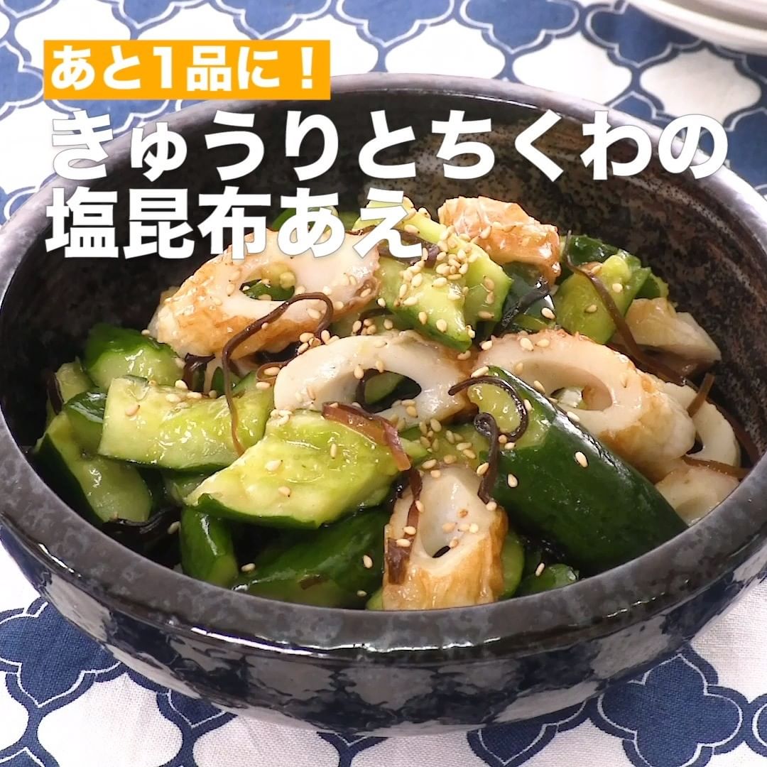 ②<あと1品に!きゅうりとちくわの塩昆布あえ>