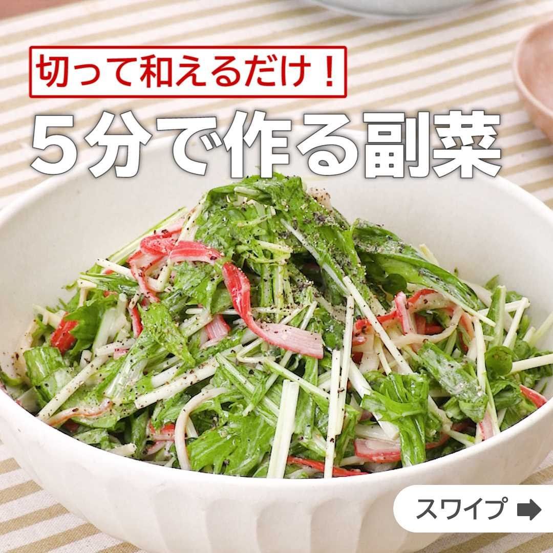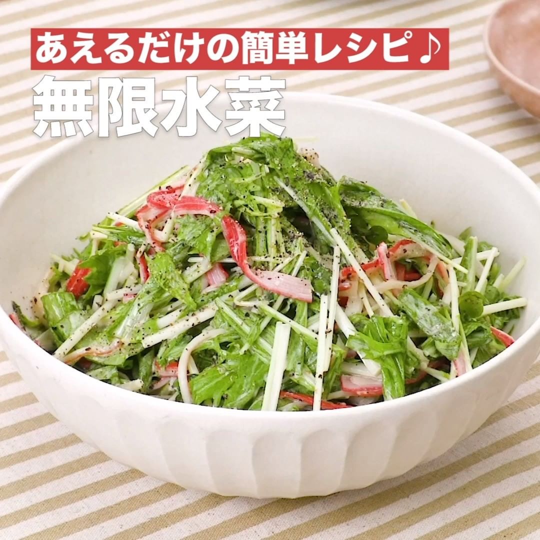 シャキシャキの水菜と塩気の効いたかにかまぼこが相性抜群です♪ポン酢にマヨネーズのコクをプラスすることでお箸が止まりません!少ない材料で手早くできるのも嬉しいレシピです♪