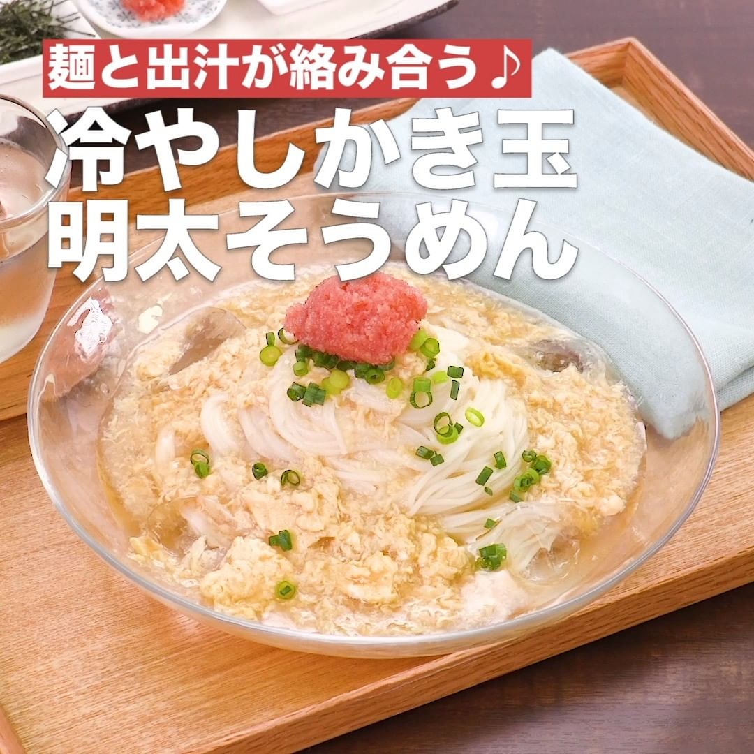 ④<麺と出汁が絡み合う♪冷やしかき玉明太そうめん>