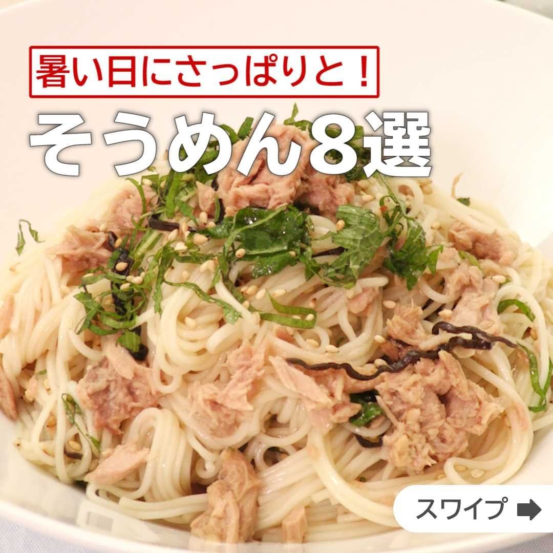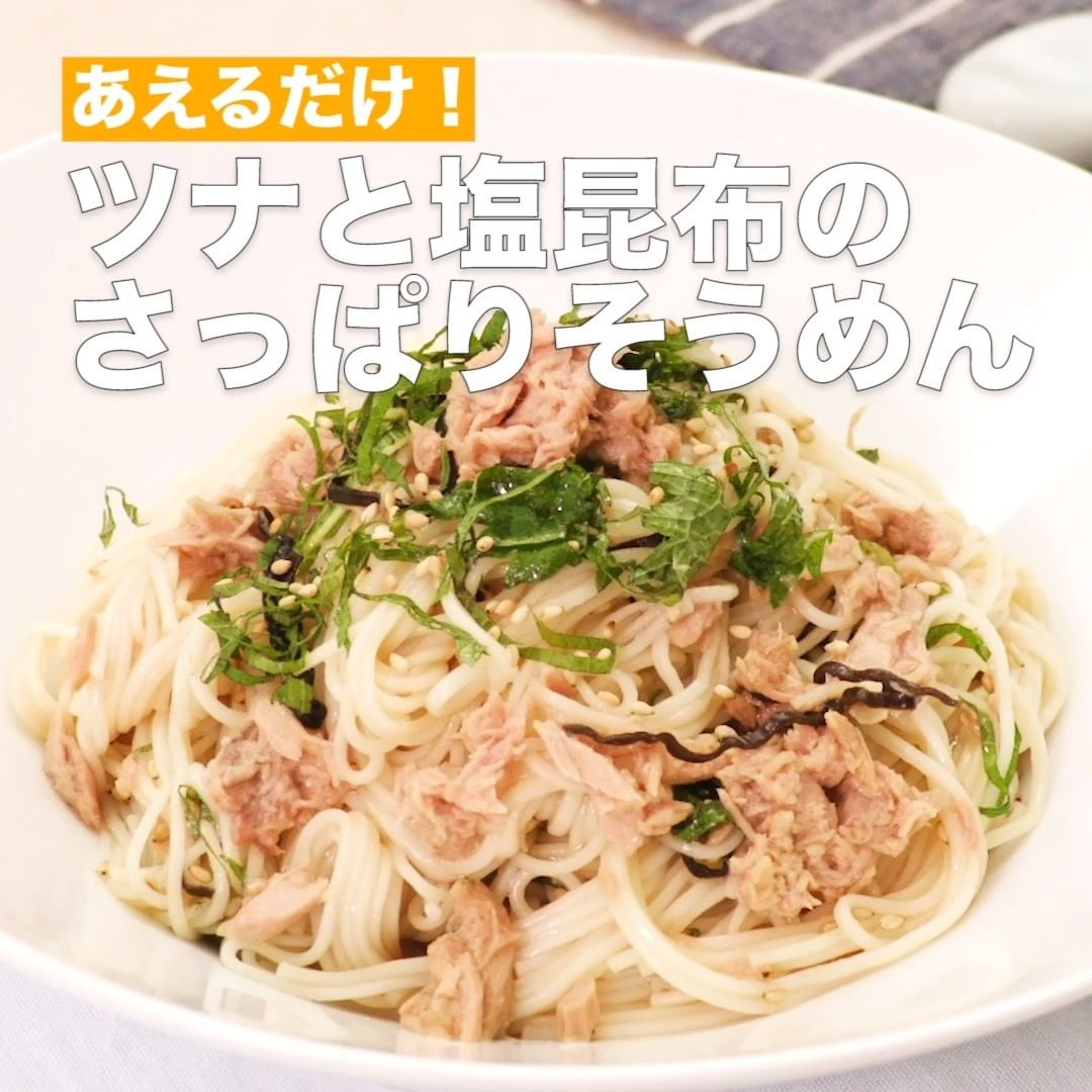 ①<あえるだけ!ツナと塩昆布のさっぱりそうめん>