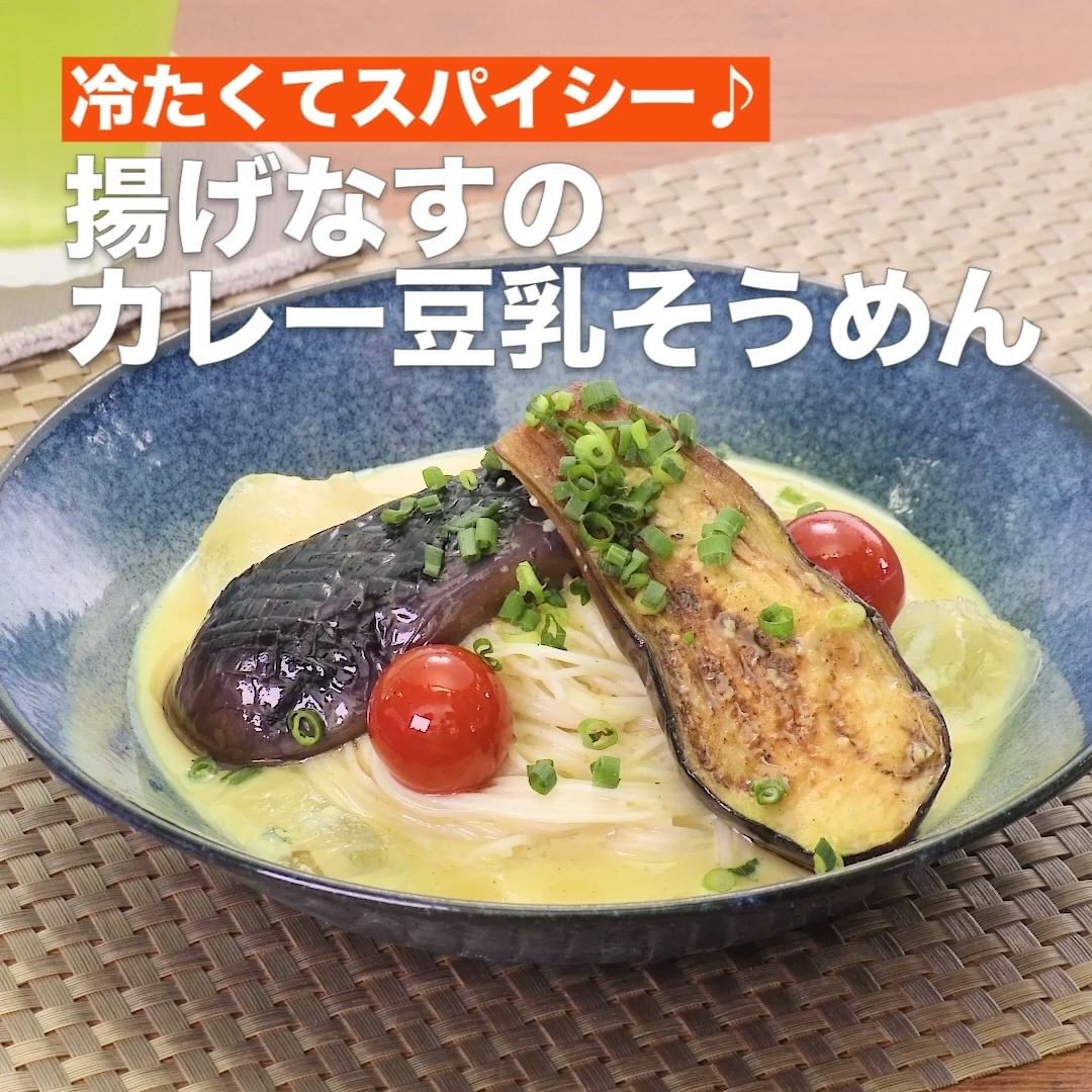⑥<冷たくてスパイシー♪揚げなすのカレー豆乳そうめん>