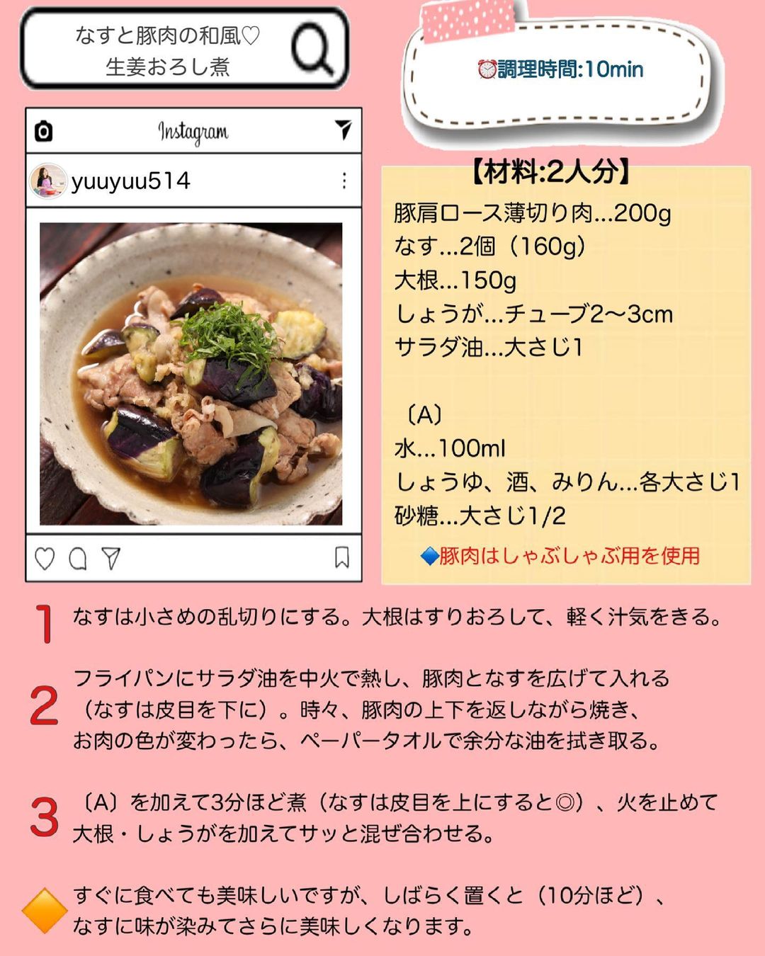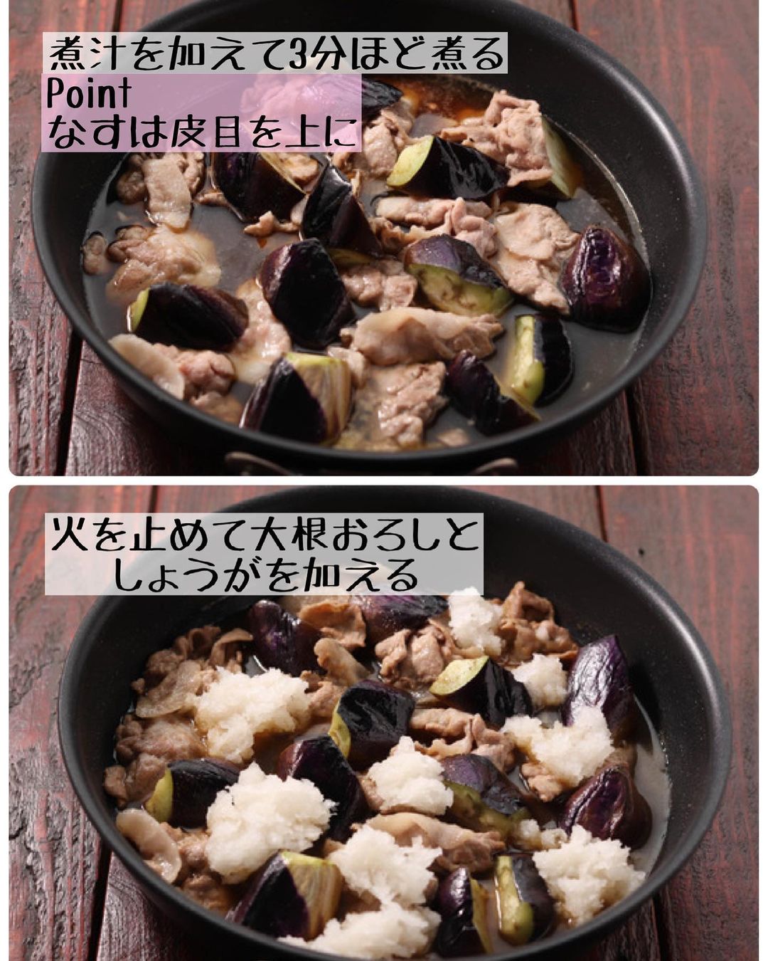 〔秋なすと豚肉の和風♡生姜おろし煮〕