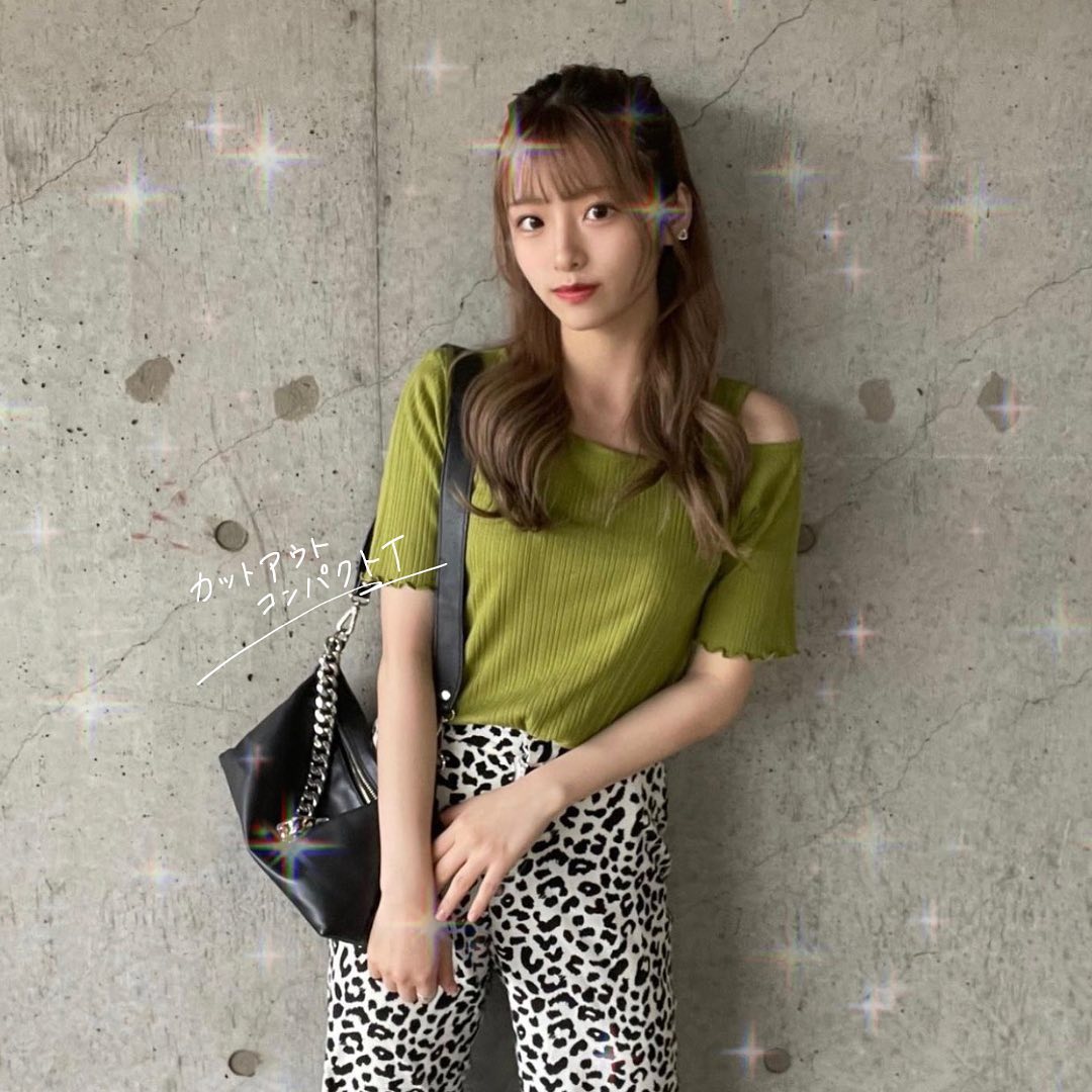 カジュアルで、大人っぽなスタイリングに◎❤️キレイ色で、アシンメトリーのデザインがCUTEな、カットアウトコンパクトT✨インパクトのある、アニマル柄との組み合わせもGOOD👍お洒落度増し増しで、可愛いです😘着心地の良いリブ素材で、すっきりとしたシルエットもポイントです👌