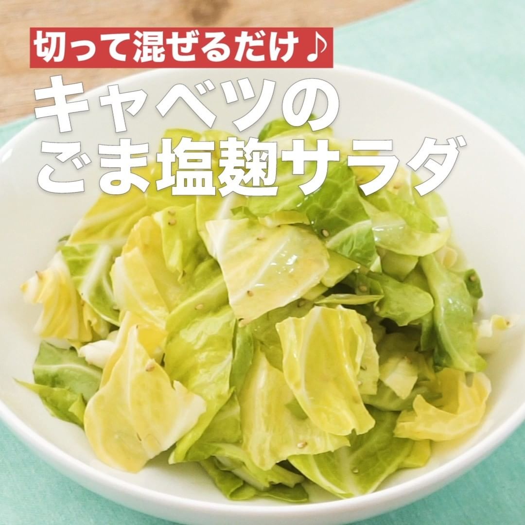 ④<切って混ぜるだけ♪キャベツのごま塩麹サラダ>