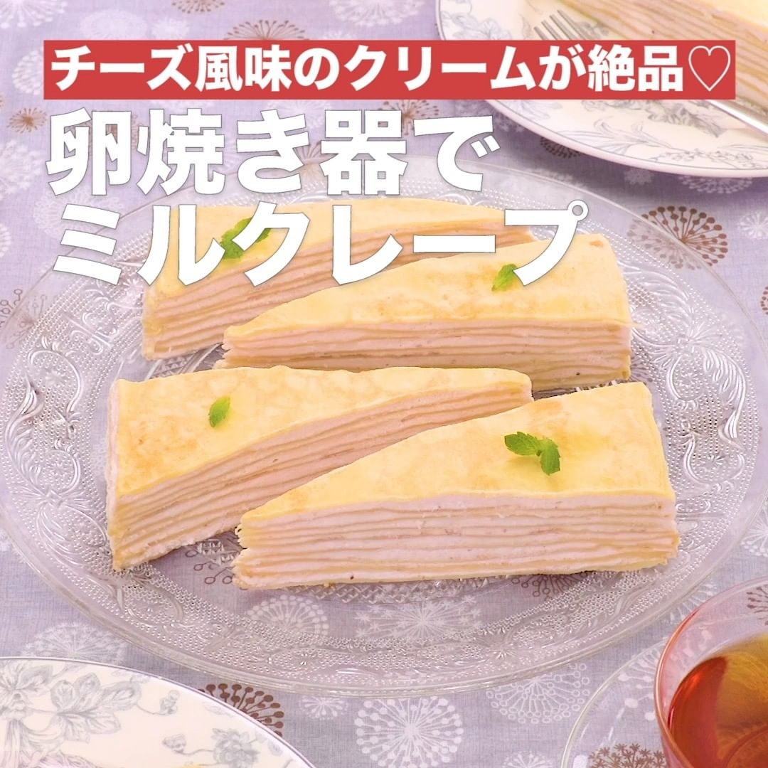 ④<�チーズ風味のクリームが絶品♡卵焼き器でミルクレープ>