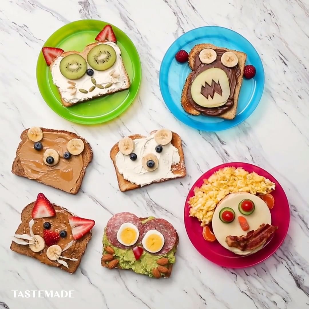 ピーナッツバター、クリームチーズ、バナナ、野菜などを使って、普通のトーストをかわいい動物に変身させてみました✨