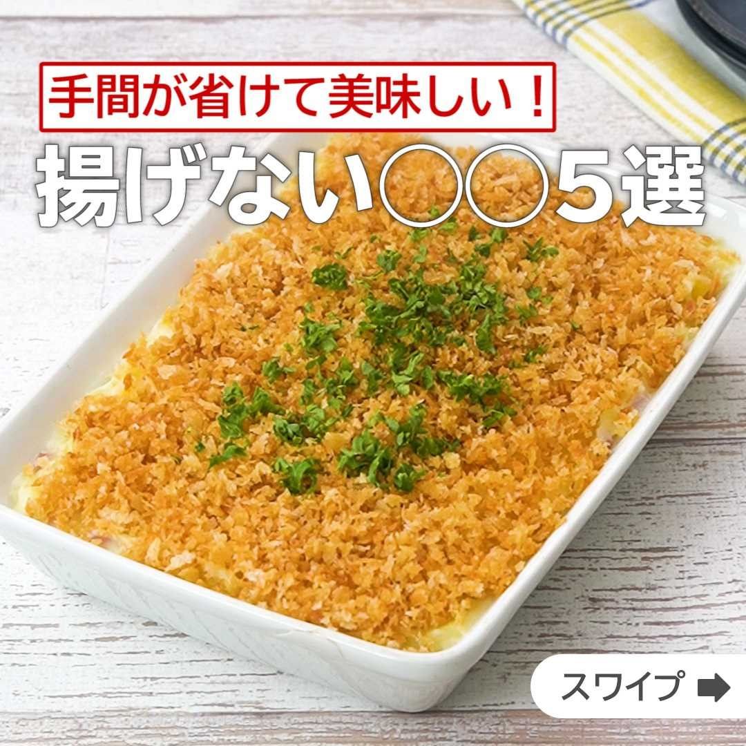 面倒なコロッケもスコップコロッケにすれば、成形いらず、揚げずに作れるのでおすすめ♪なめらかなポテトクリームとサクサクのパン粉の食感は飽きずに何度も食べたくなる味わいです。中身の具材はアレンジしてお楽しみください!