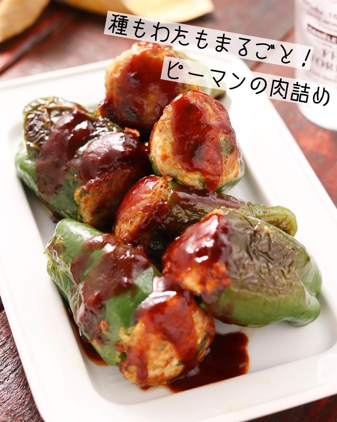 𓎩 種もわたもまるごと!ピーマンの肉詰め