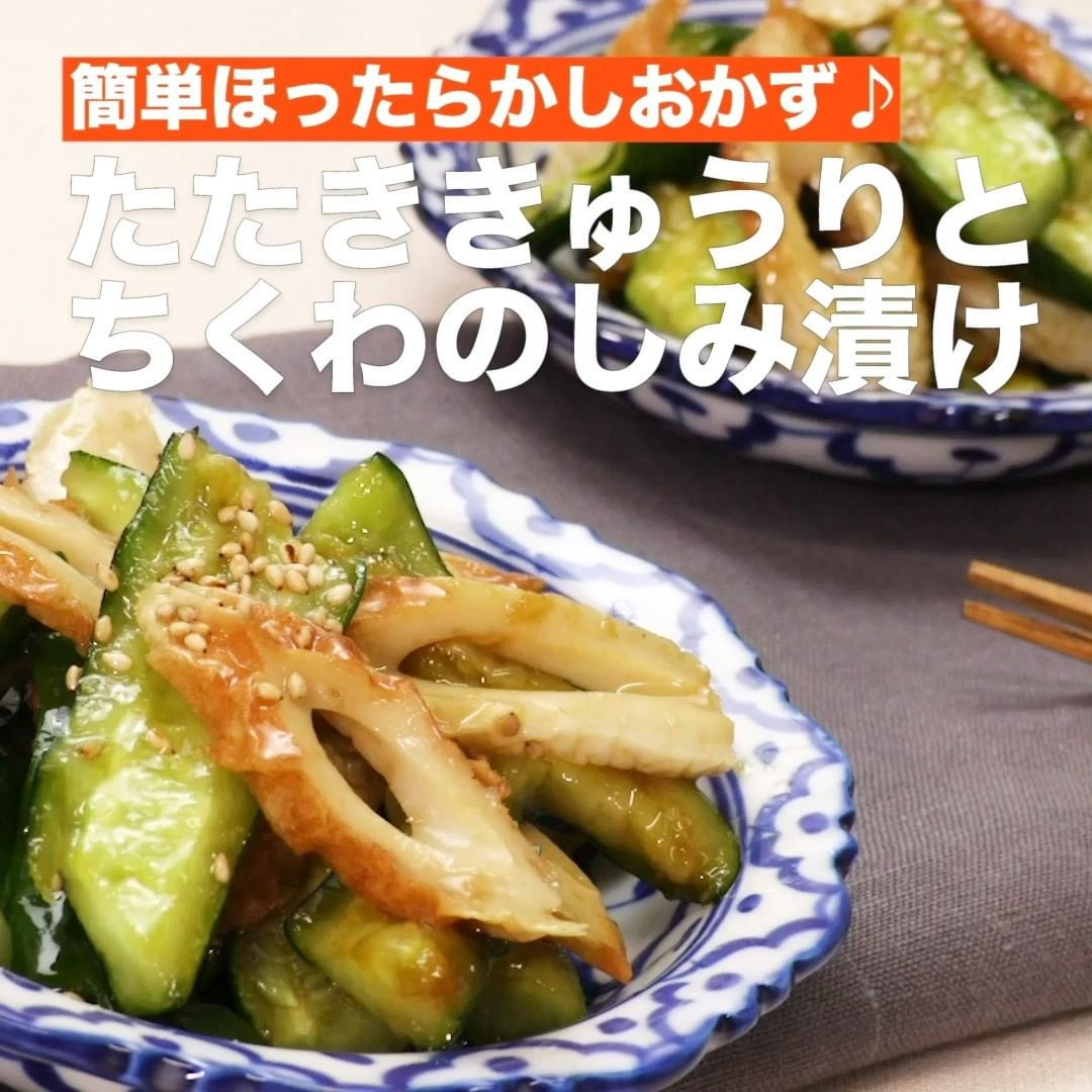 ①<簡単ほったらかしおかず♪たたききゅうりとちくわのしみ漬け>