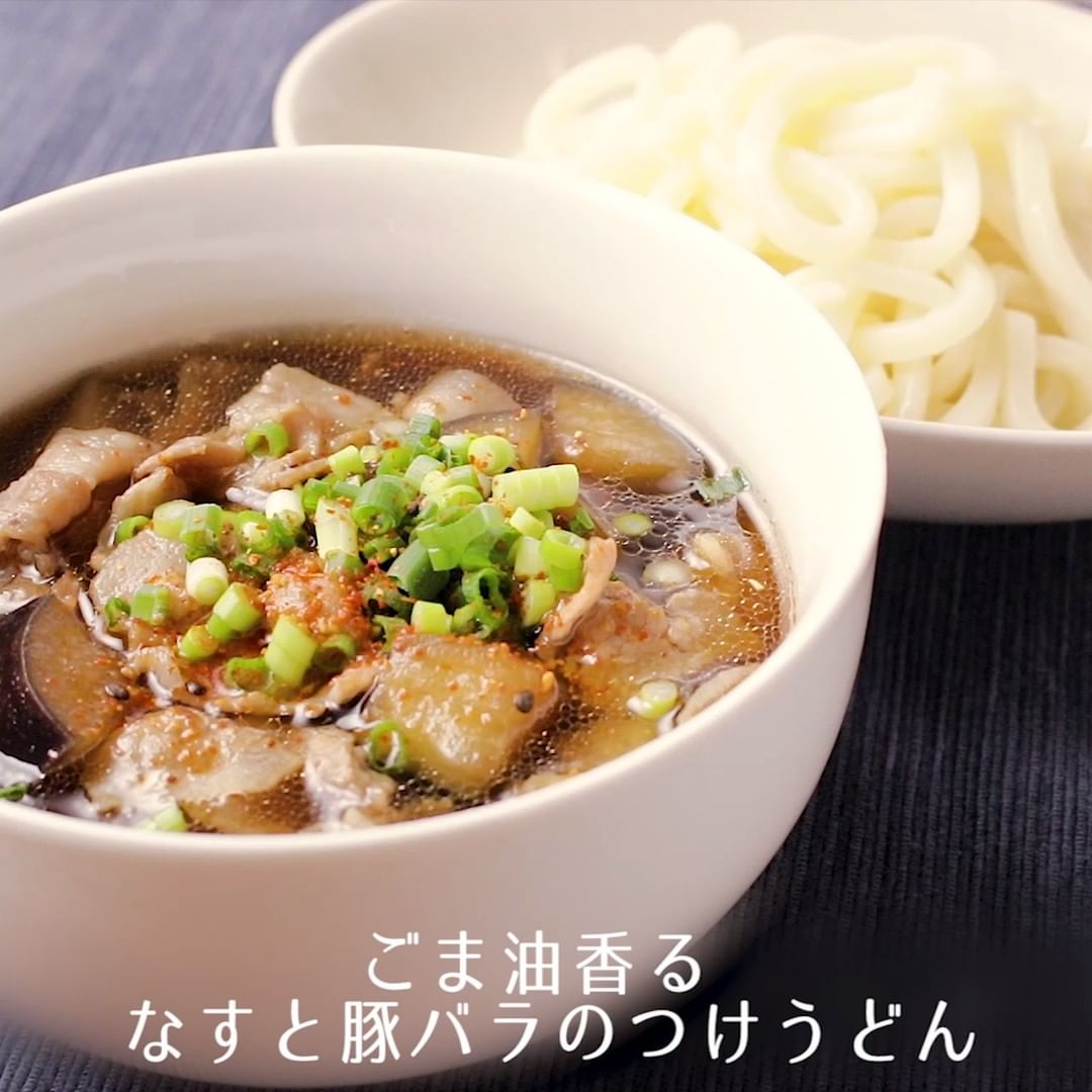①ごま油香る なすと豚バラのつけうどん