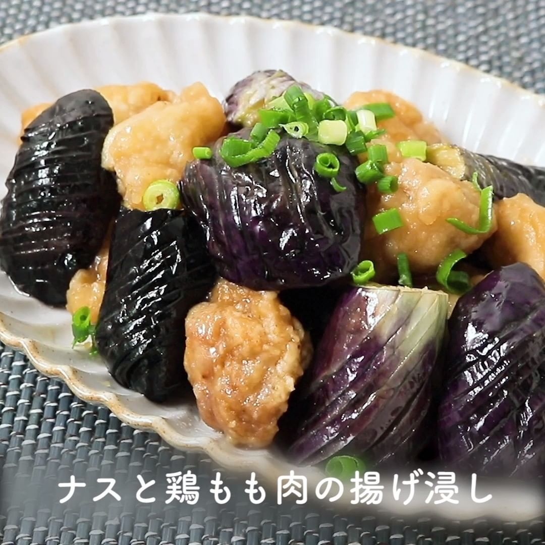 ②ナスと鶏もも肉の揚げ浸し