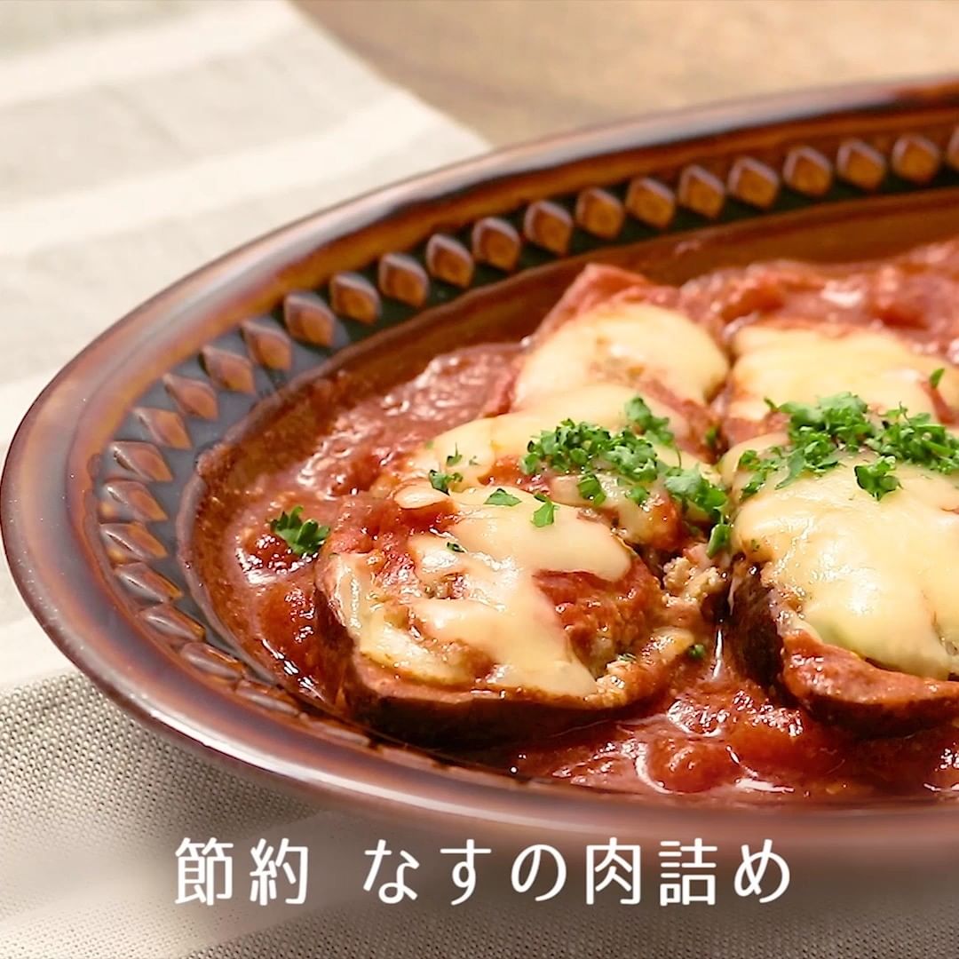 ③節約 なすの肉詰め