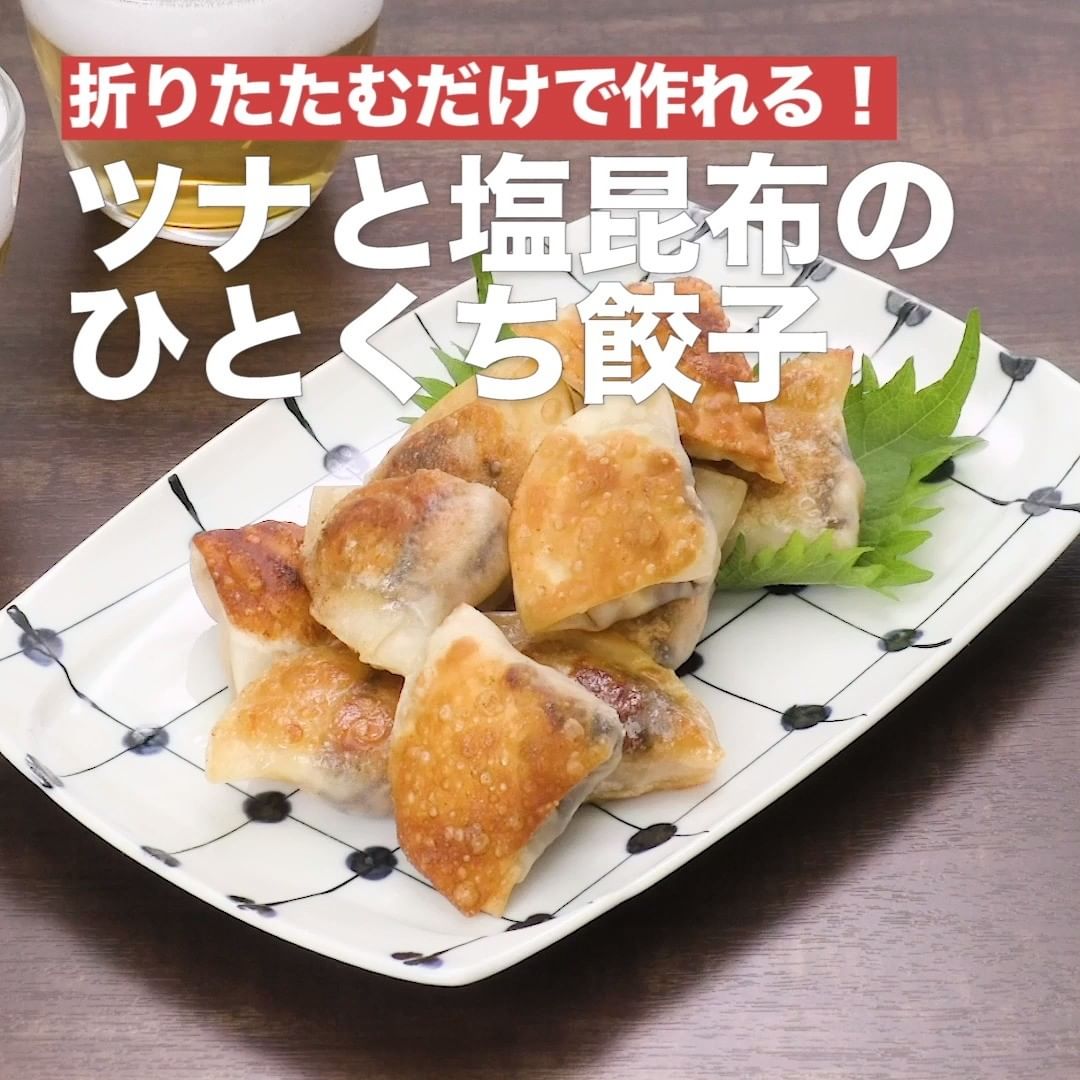 ①<折りたたむだけで作れる!ツナと塩昆布のひとくち餃子>