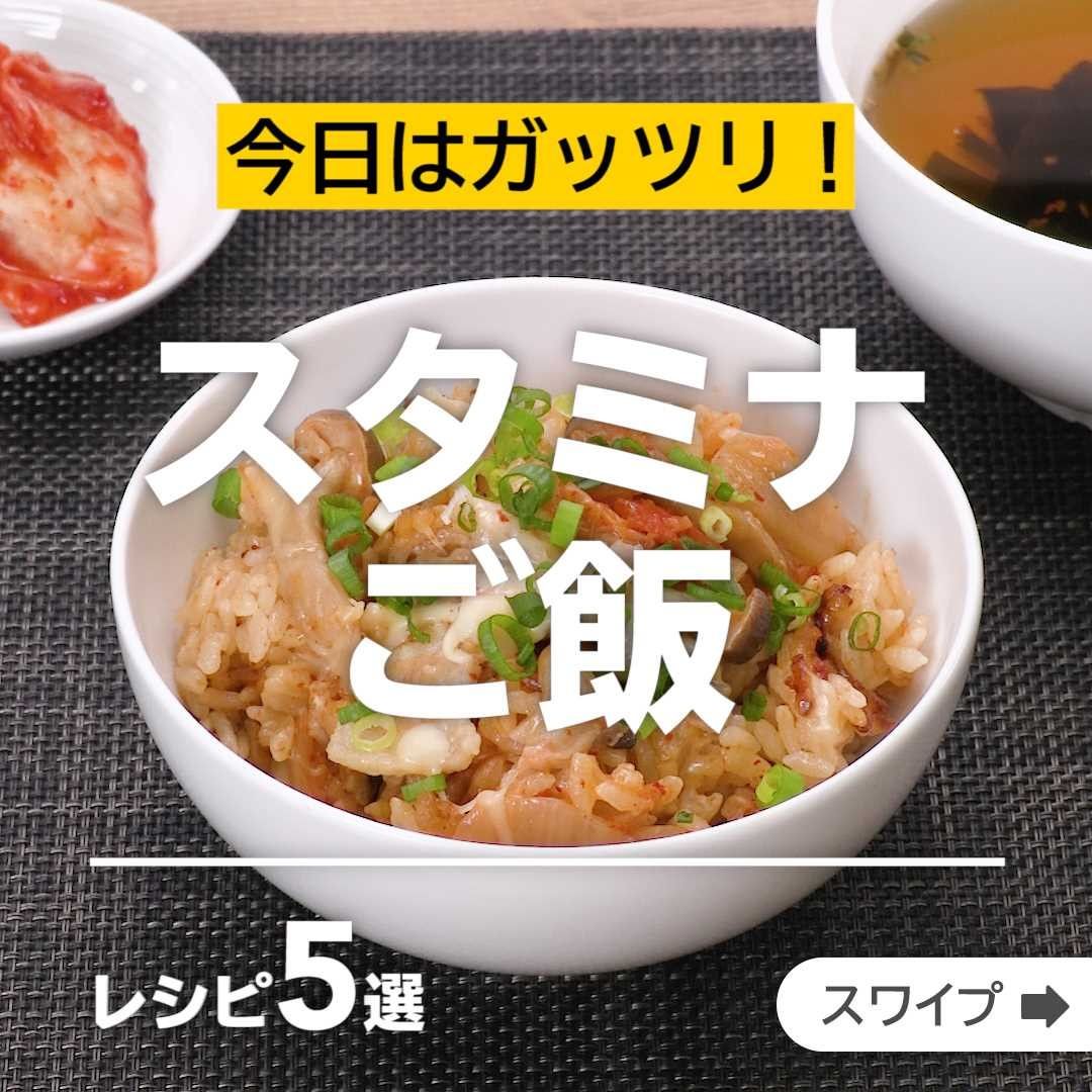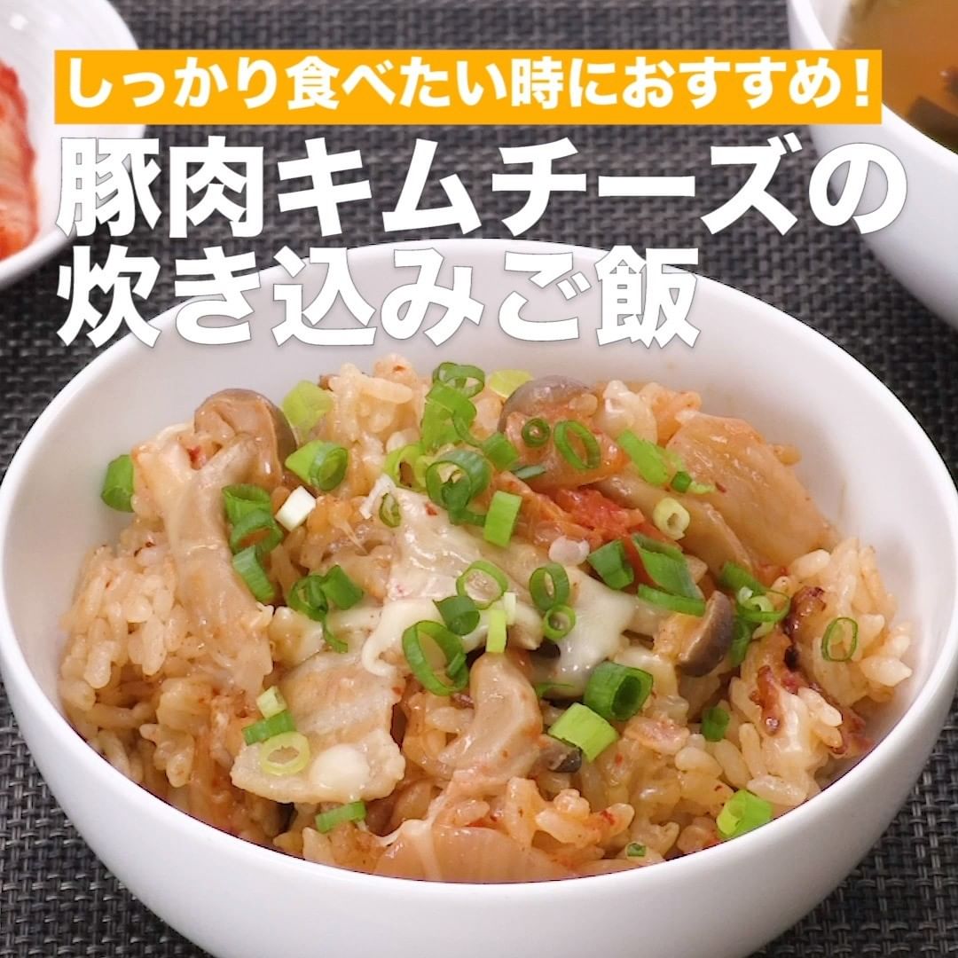 ①<しっかり食べたい時におすすめ!豚肉キムチーズの炊き込みご飯>