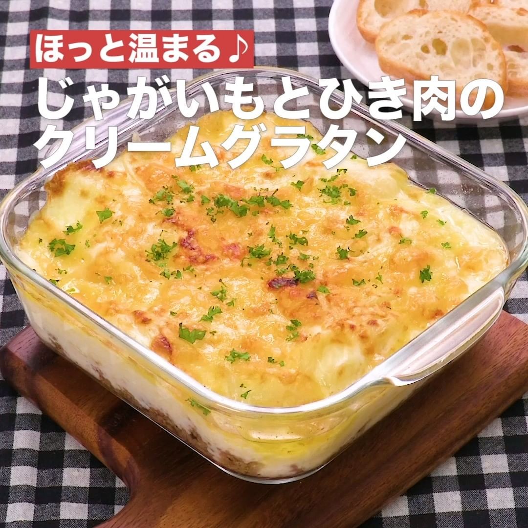 ⑧<ほっと温まる♪じゃがいもとひき肉のクリームグラタン>