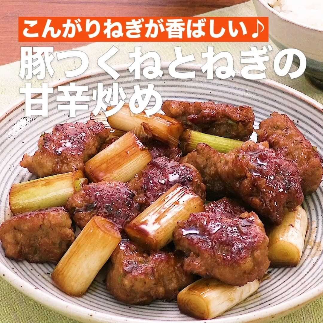 ⑥<こんがりねぎが香ばしい♪豚つくねとねぎの甘辛炒め>