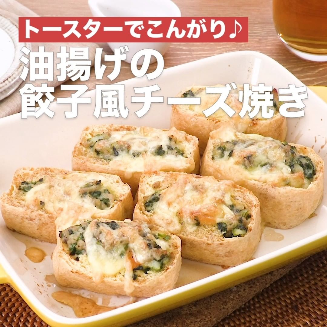 ⑦<トースターでこんがり♪油揚げの餃子風チーズ焼き>