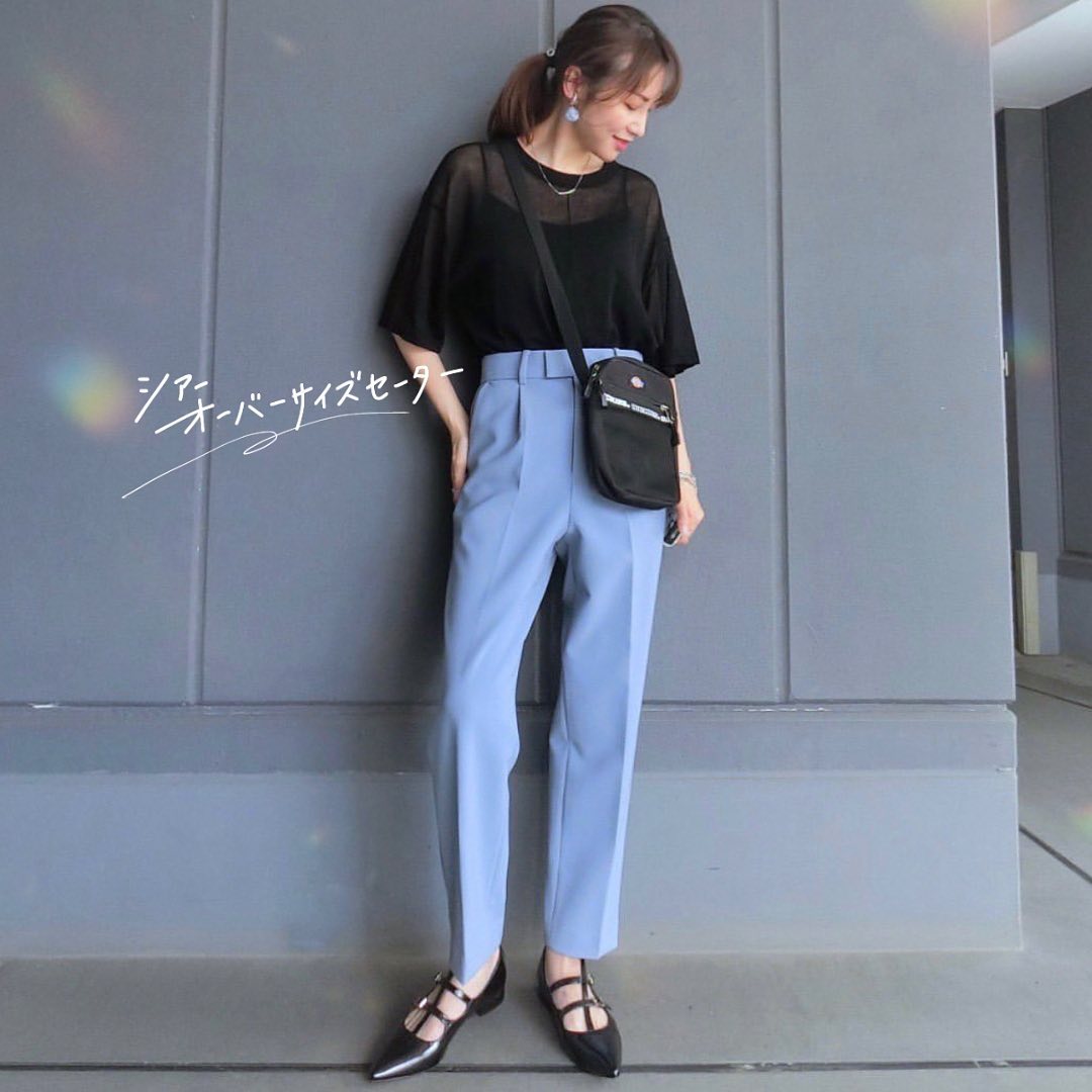 ブラックとブルーの2色コーデが、凛とした雰囲気を漂わせて✨COOL😘落ち感のあるシアーセーターが、柔らかで、ちょうど良いキメ感ですね👌オーバーサイズシルエットで、サイドにスリットも入っているので、色々なレイヤードスタイルを楽しめます🙌是非、チェックしてみてくださいね💁♀️💕