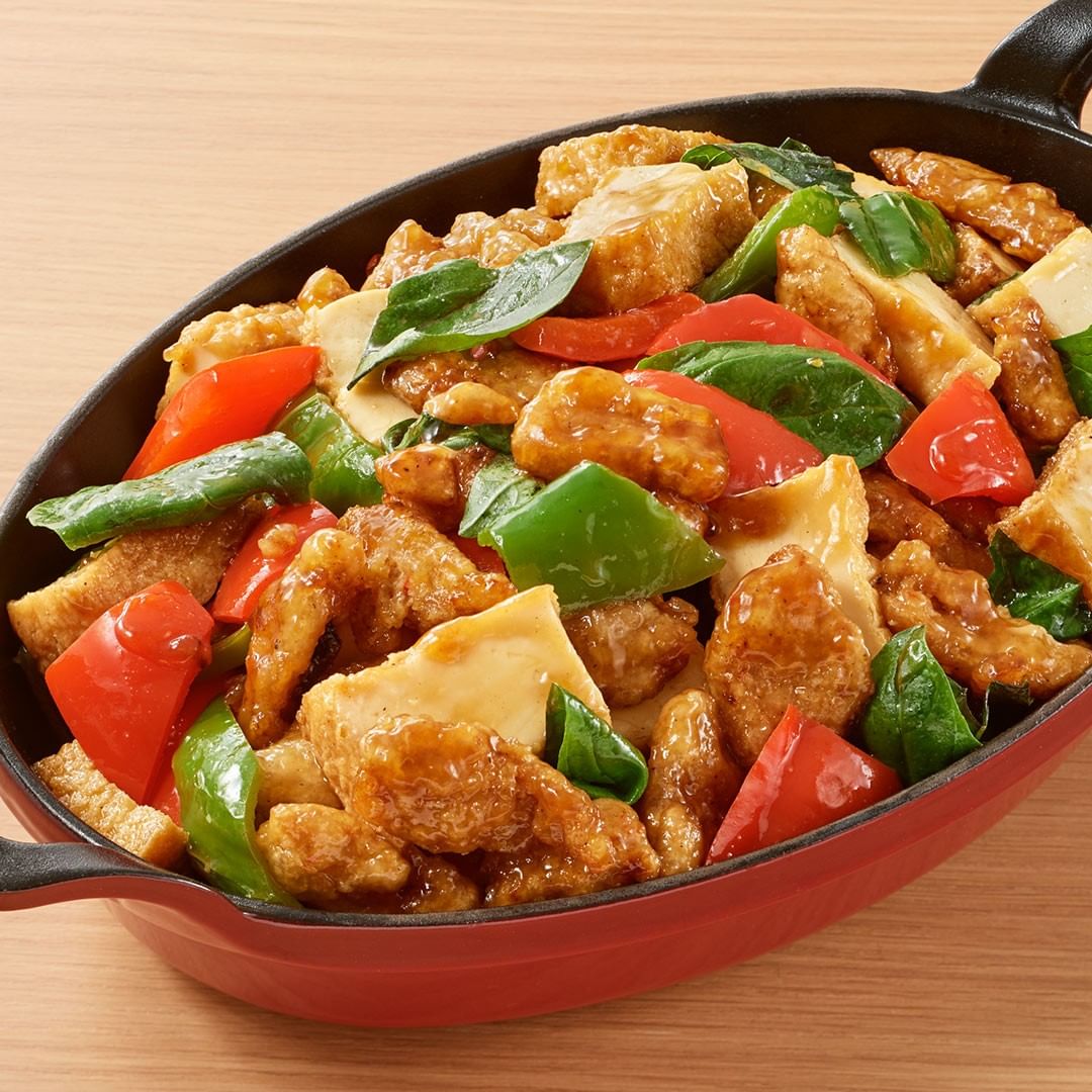 食物繊維や植物性たんぱく質が豊富な大豆ミートと厚揚げを合わせ、豆板醬でピリ辛に仕上げました。