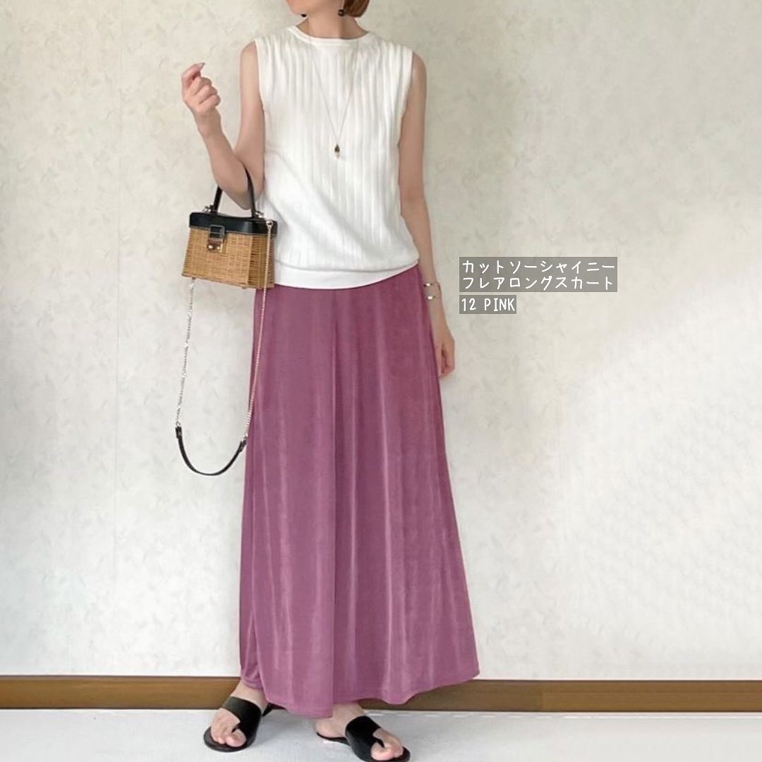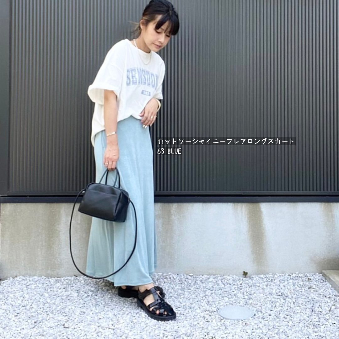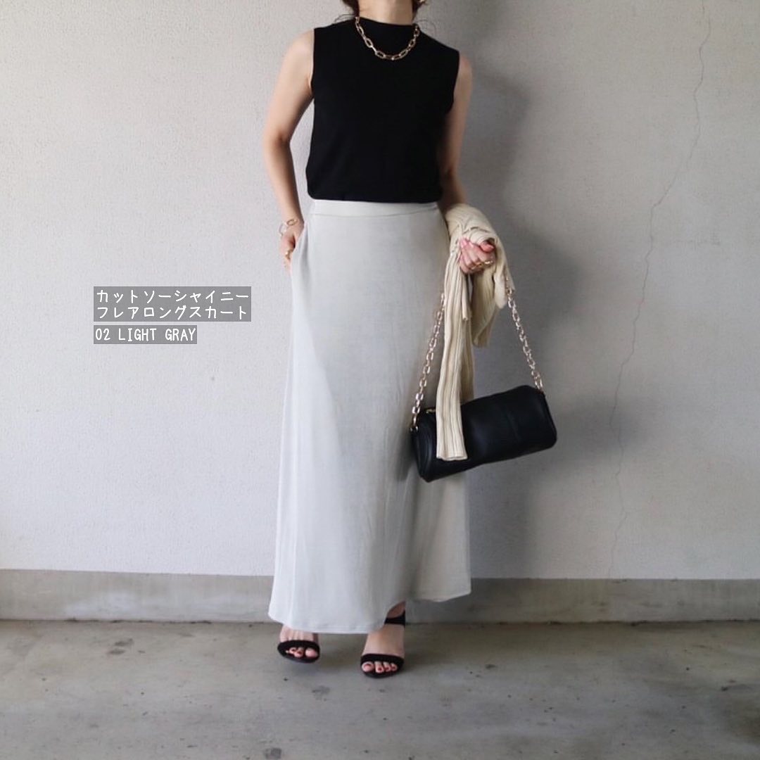 ☑︎カットソーシャイニーフレアロングスカート