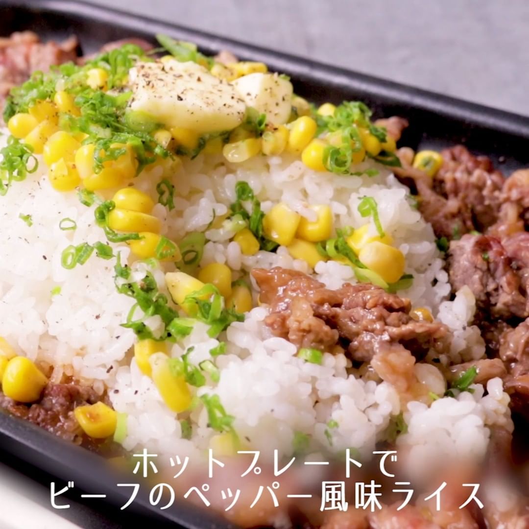 ①ホットプレートで ビーフのペッパー風味ライス