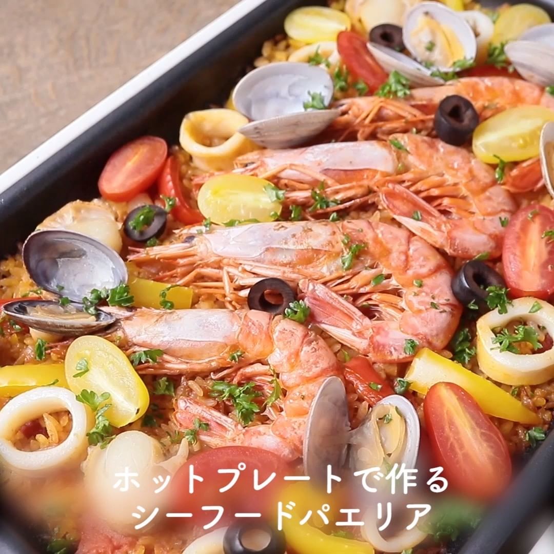 ③ホットプレートで作る シーフードパエリア