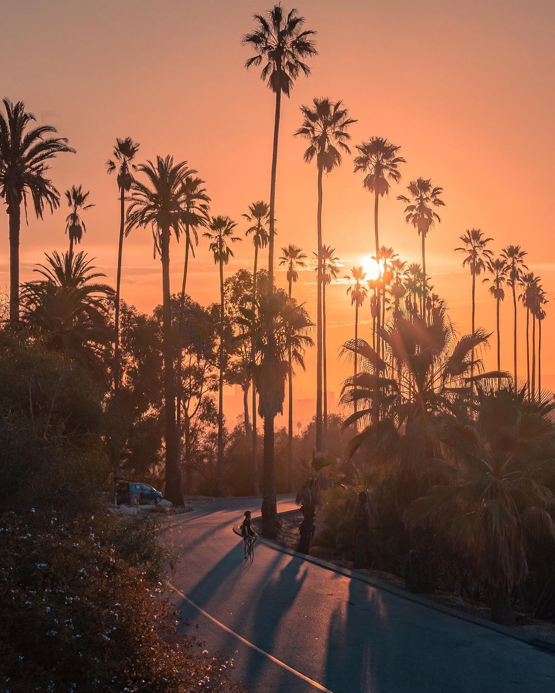 Photo by @lenafound: “This spot at Elysian Park in Los Angeles is well known thanks to its perfectly lined up palm trees that work so well as subjects when capturing sunsets. I wanted to give it a more dynamic edge and added the cyclist from another photo taken that same day. I also flipped the image to give it a different perspective. Even without a dramatic sky, sunsets here invite you to dream.” #ShotOnCanon