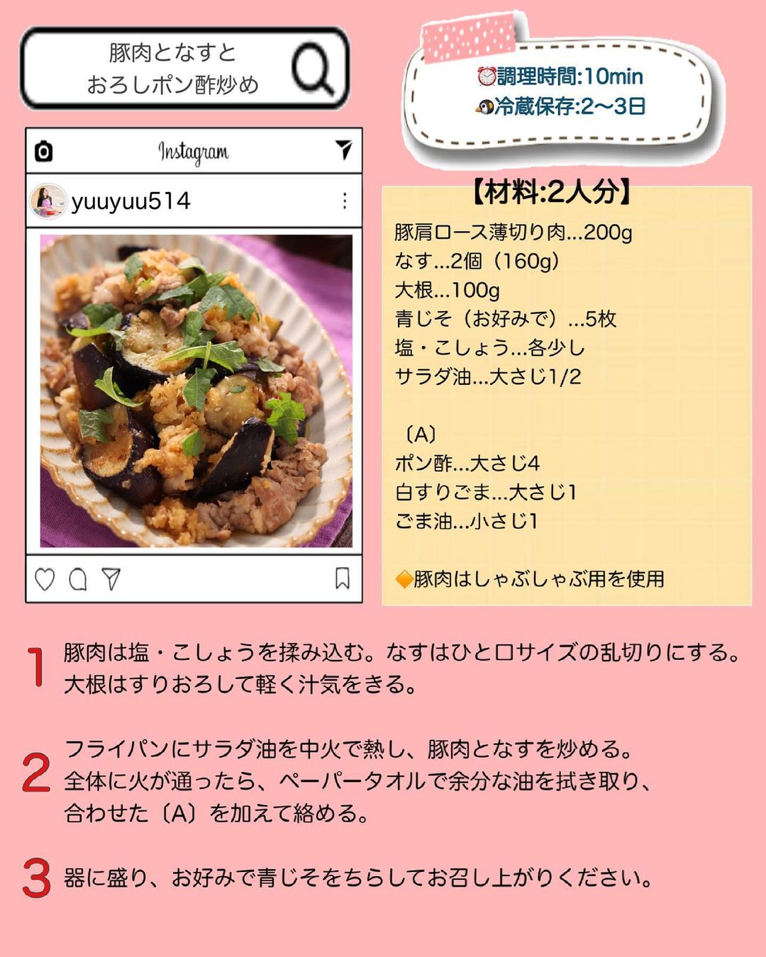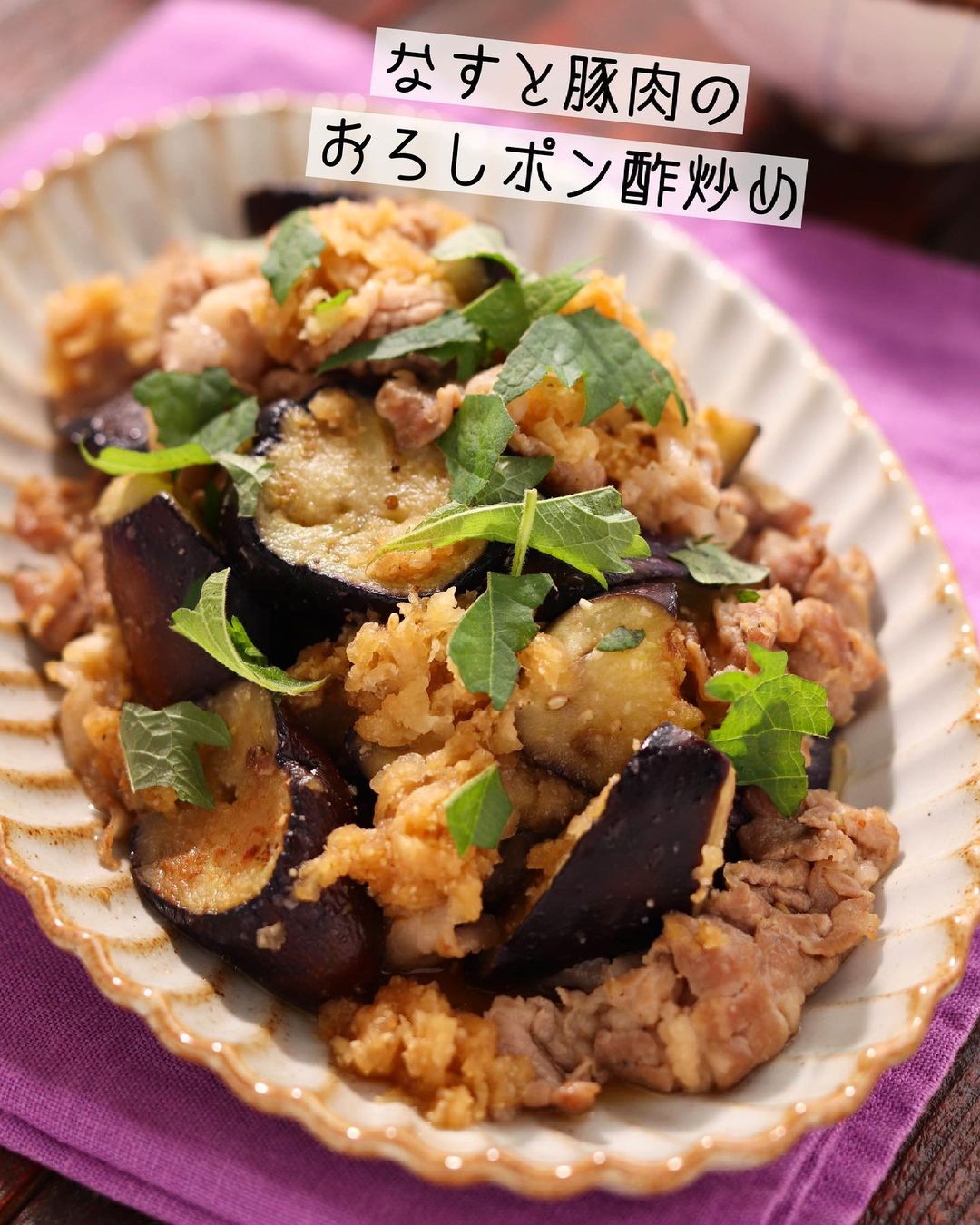 𓎩 #なすと豚肉のおろしポン酢炒めy