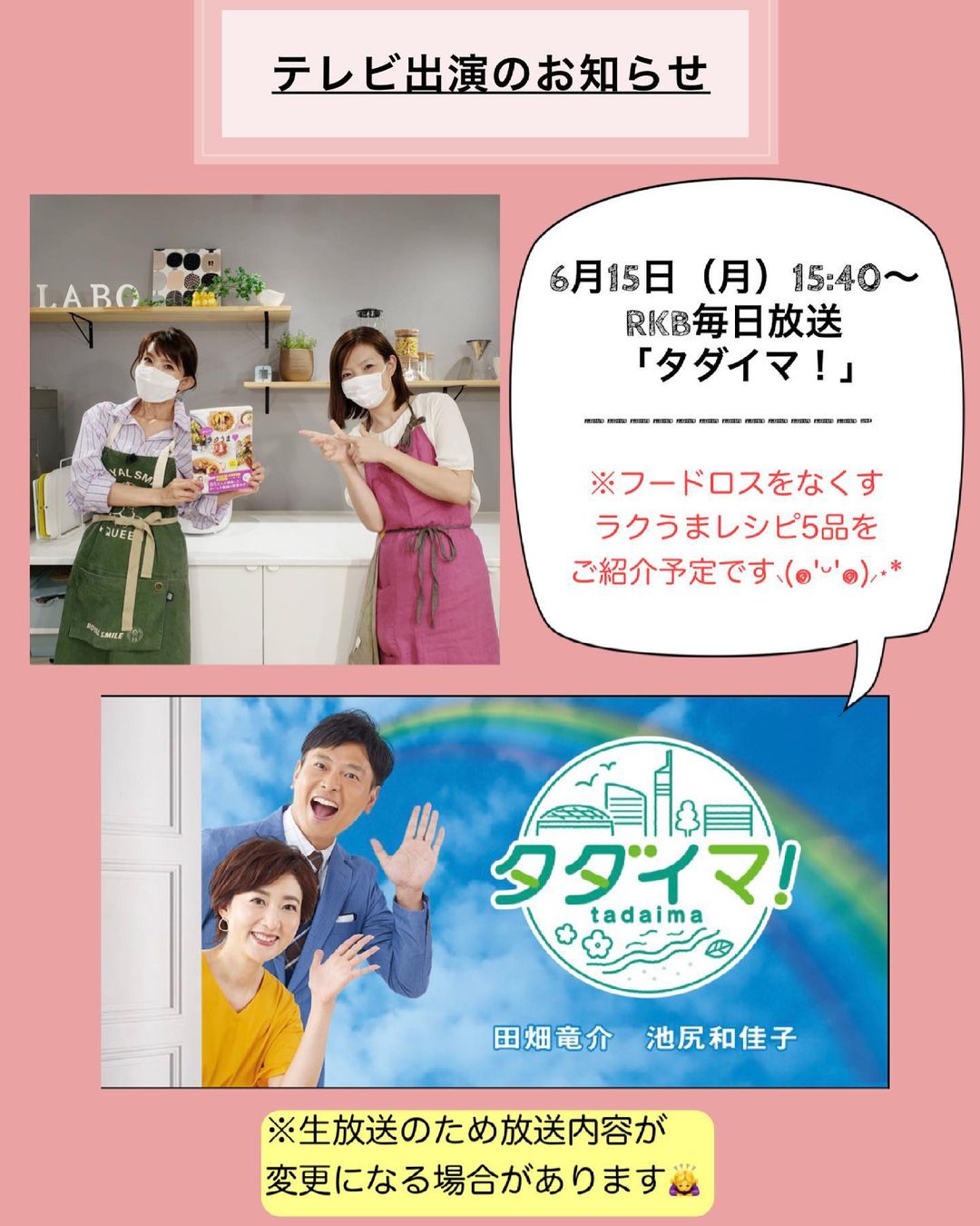 📺テ レ ビ 出 演 の お 知 ら せ /
