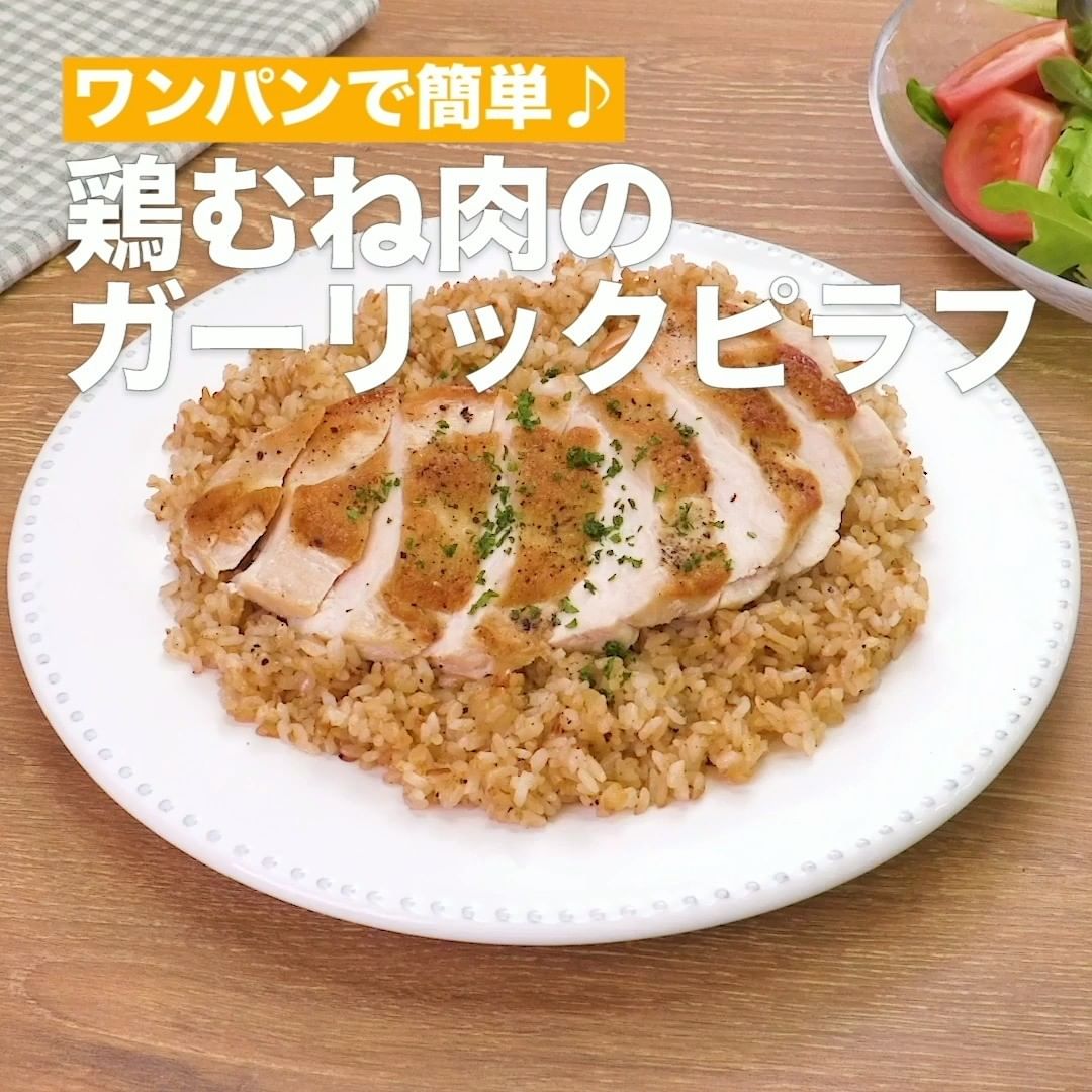 ⑤<ワンパンで簡単♪鶏むね肉のガーリックピラフ>