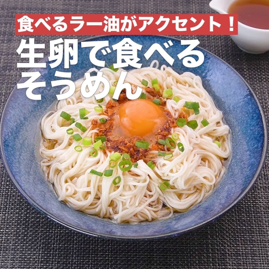 ①<食べるラー油がアクセント!生卵で食べるそうめん>