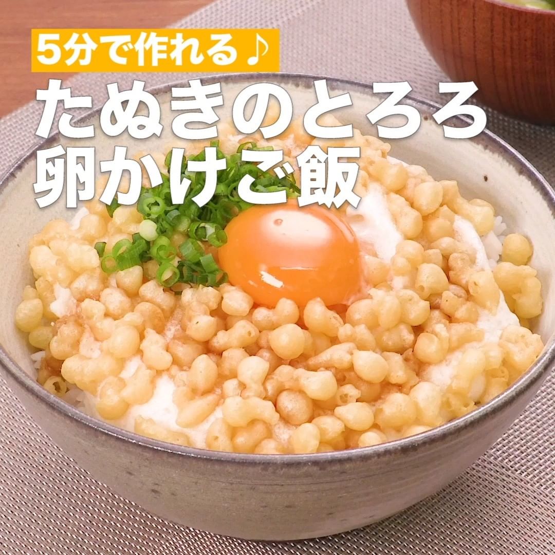 ③<5分で作れる♪たぬきのとろろ卵かけご飯>