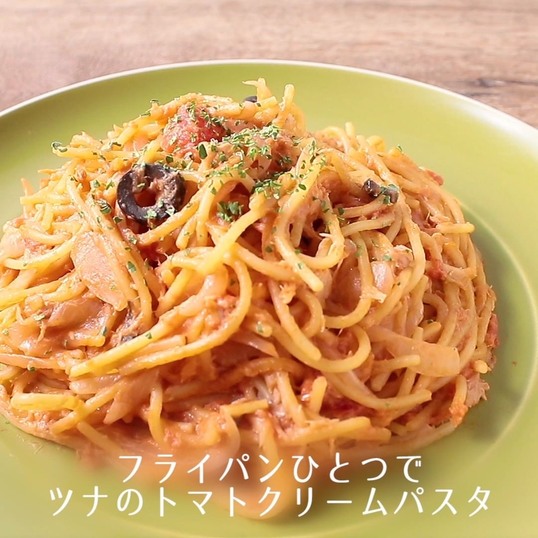 ②フライパンひとつで ツナのトマトクリームパスタ