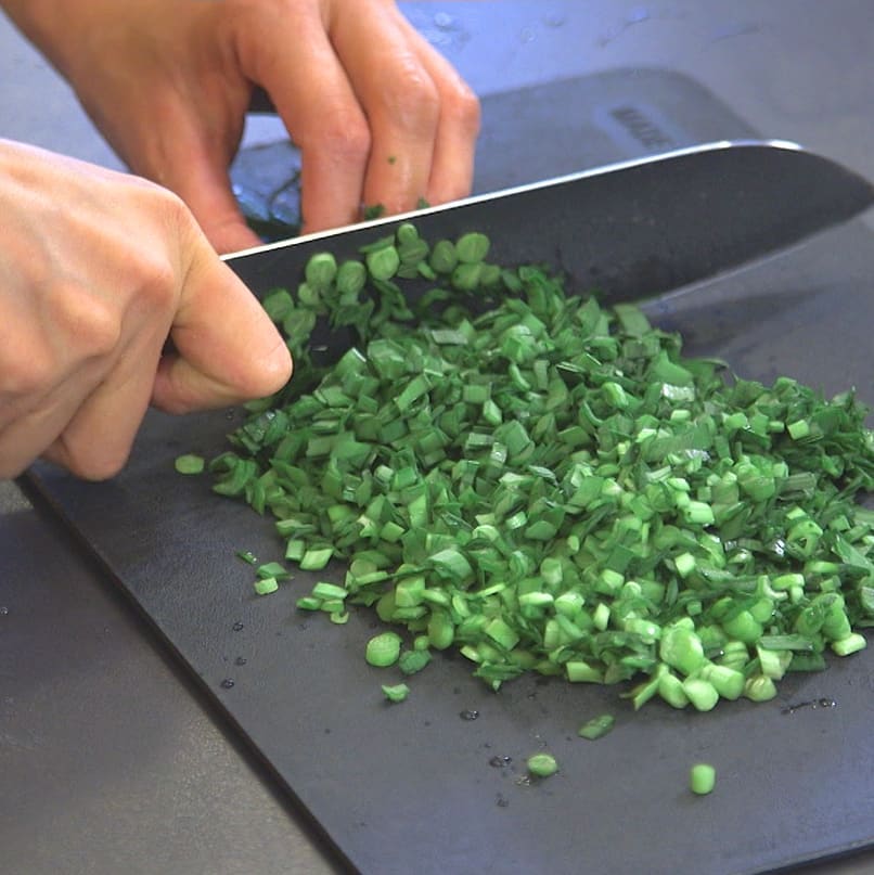 ⑤ニラ1束を細かく刻む