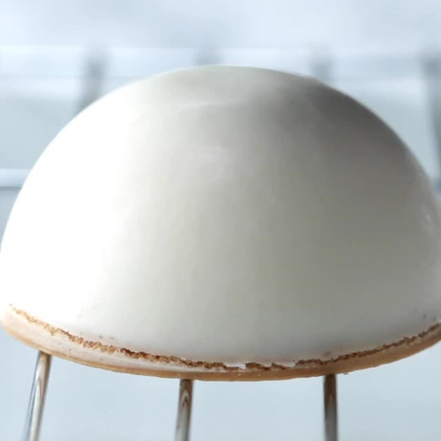9.(4)のケーキに(8)をかける。仕上げに銀粉を散らしたら、完成!