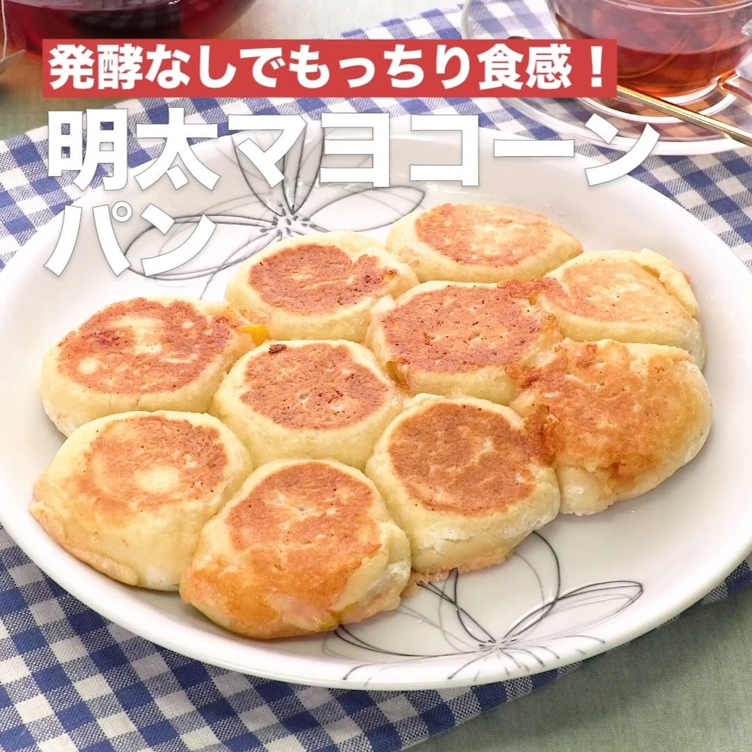 ⑧<発酵なしでもっちり食感!明太マヨコーンパン>