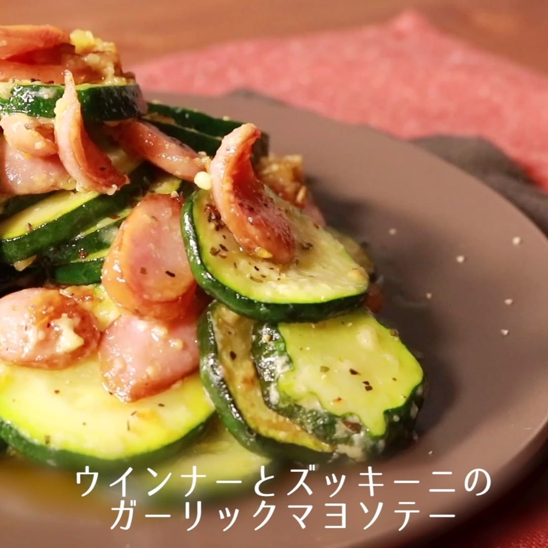 ⑤ウインナーとズッキーニのガーリックソテー