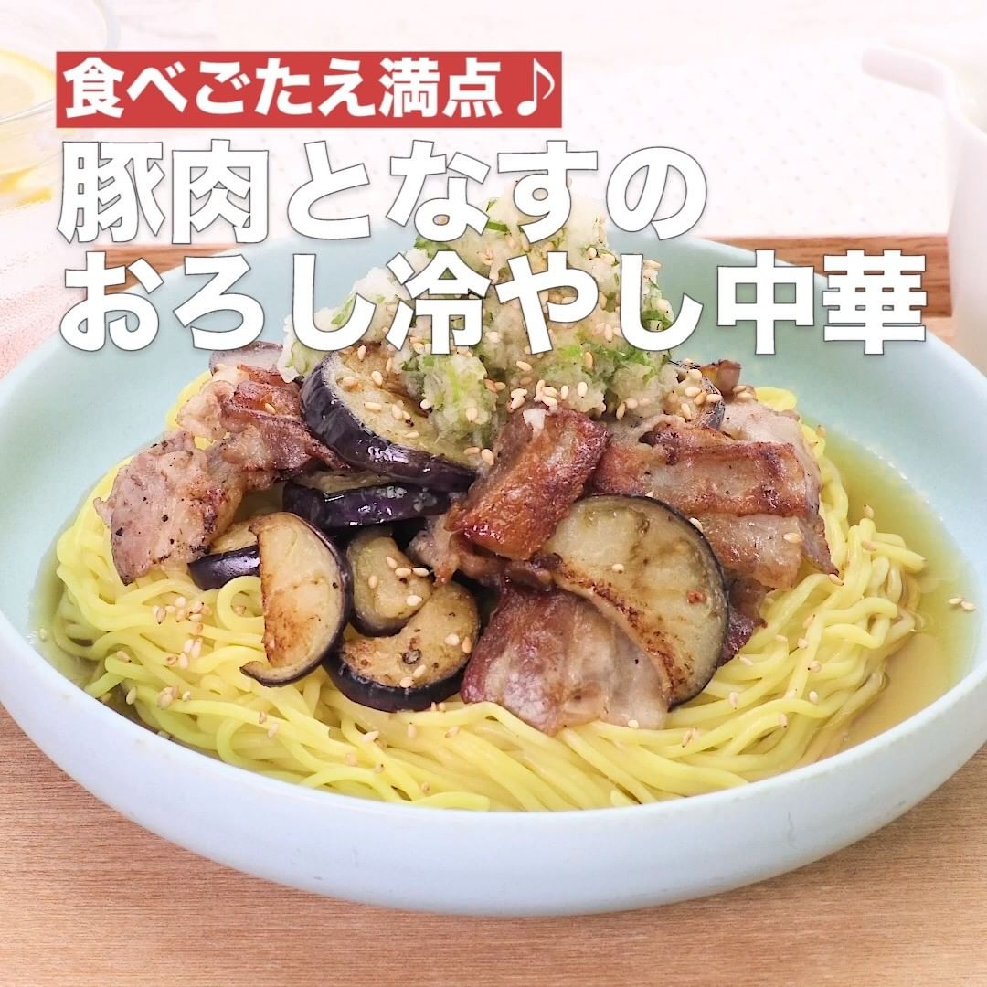 ①<食べごたえ満点♪豚肉となすのおろし冷やし中華>