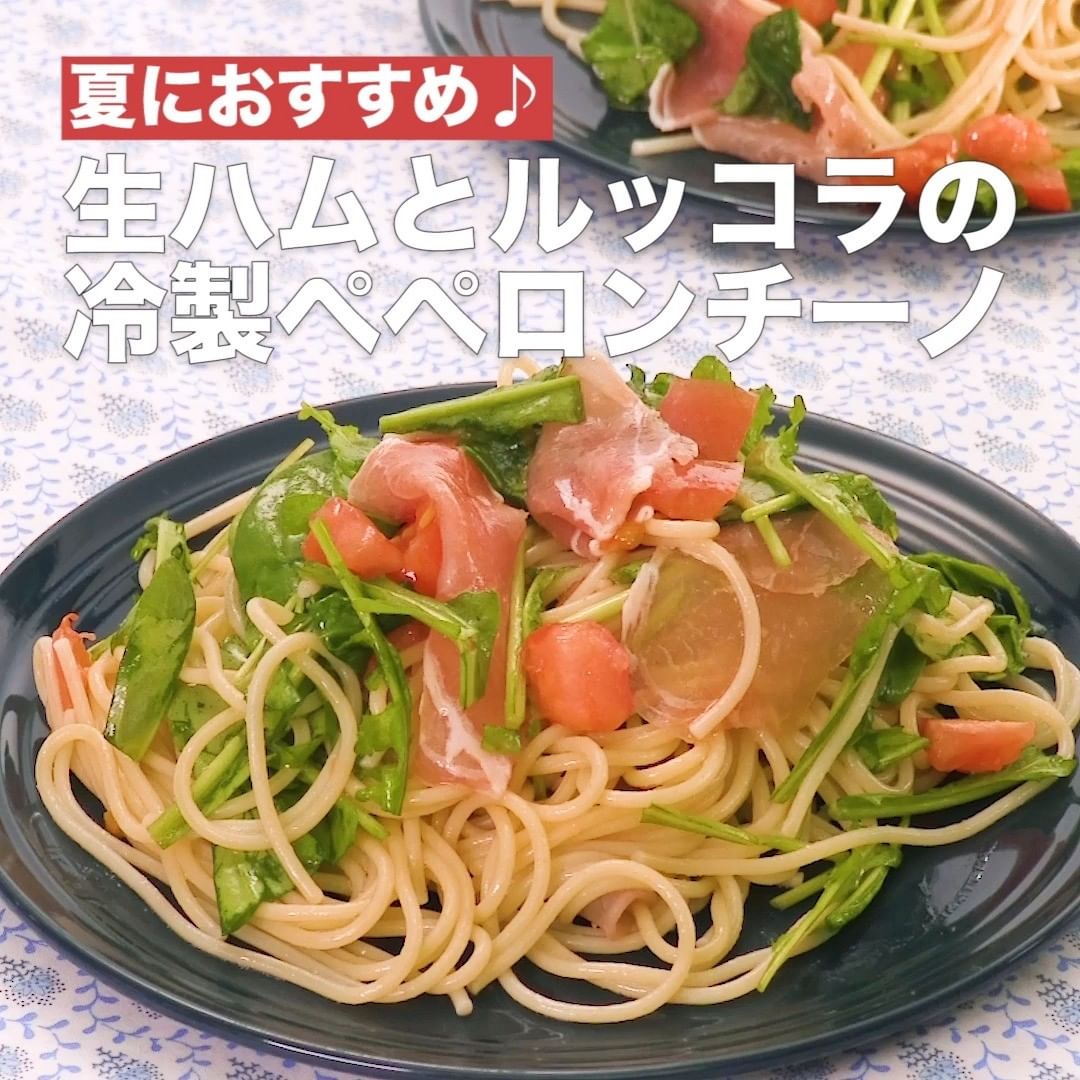 ④<夏におすすめ♪生ハムとルッコラの冷製ペペロンチーノ>