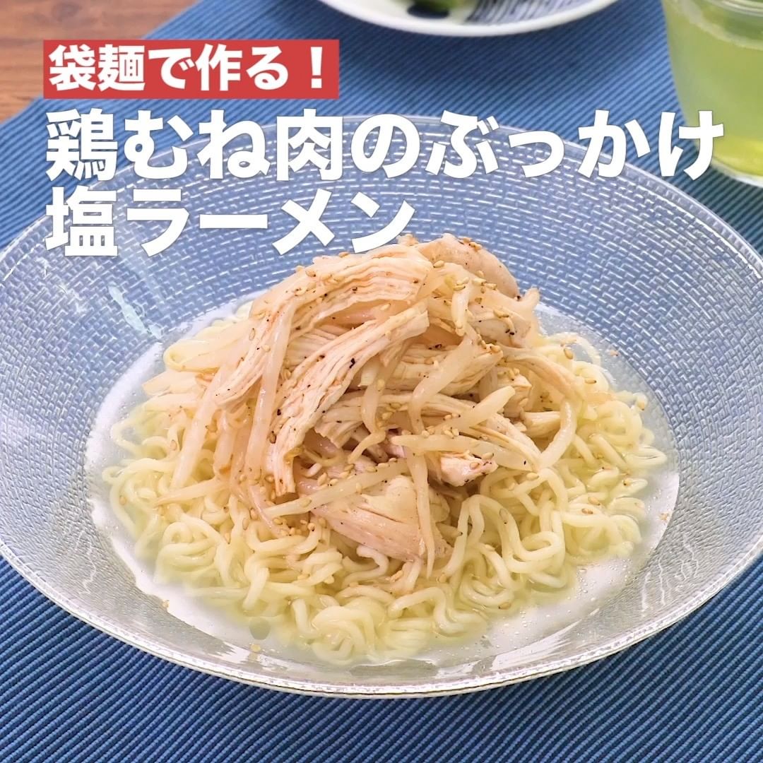 ③<袋麺で作る!鶏むね肉のぶっかけ塩ラーメン>