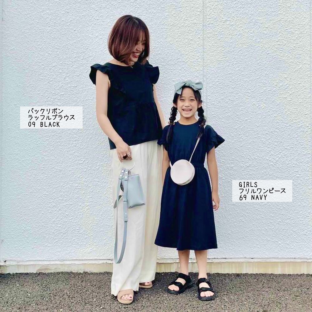 可愛いって楽しくなる💕CUTEなフリルでリンクコーデ😍GIRLSのワンピは、ウエストのギャザーと、ふんわりスカートのシルエットが、たまらなく可愛い😘ママは、バックリボンで、さりげなく可愛らしい印象に✨袖のフリルでリンク❤️今日は、ロマンティック気分で過ごしちゃう?👏