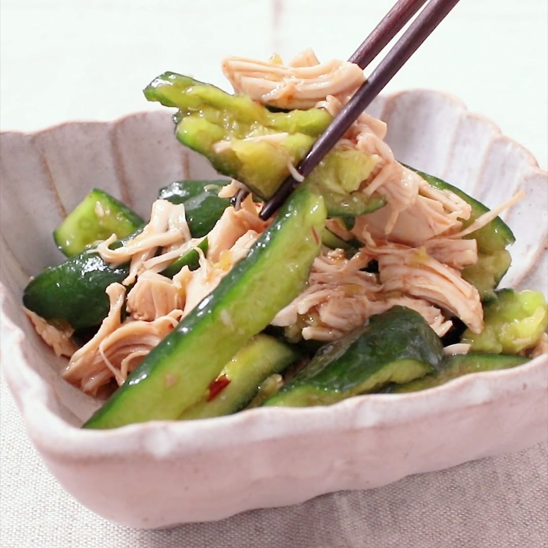 ①ごま油香る 叩ききゅうりと鶏ササミの簡単和え