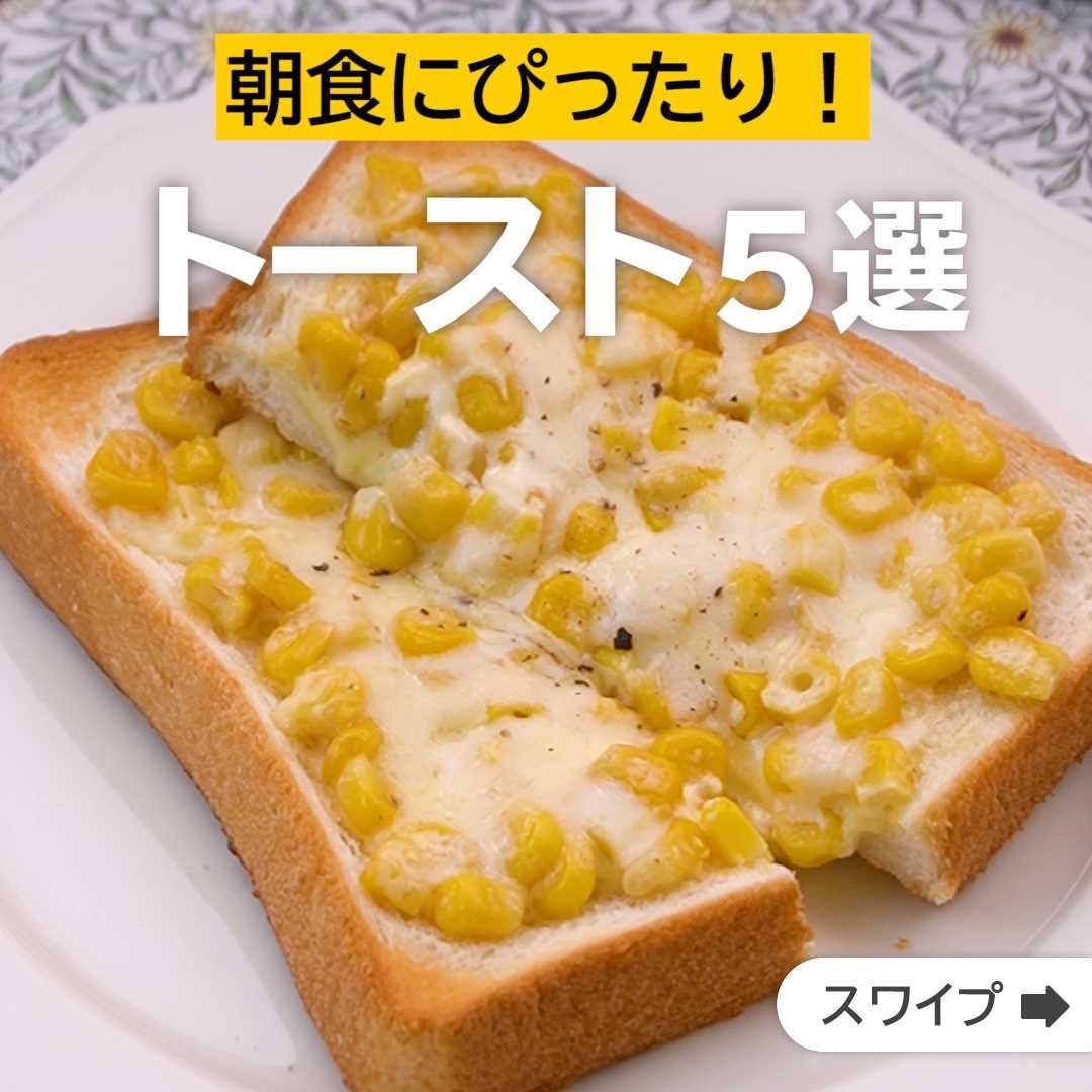 ①<朝食にぴったり!コーンマヨのチーズトースト>